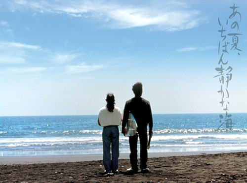 그러나 모든 영화가 흥행조건을 따르진 않는다. 나름의 기획의도를 가지고선 감독과 연출의 생각을 밀어붙이는 영화들도 있다. 내가 오늘 본 영화가 그랬다. 바로 기타노 다케시 감독의 91년작 <그 여름 가장 조용한 바다>다. 영화는 젊은 청춘 남녀를 주인공으로 한다. 영화의 배경은 바다다. 청춘과 바다라는 키워드는 말만 들어도 역동적이고 시끄럽다. 하지만 영화 제목이 암시하듯 이 영화는 잔잔하고 조용하다. 그럴 수밖에 없는 가장 큰 요인은 영화의 두 주인공이 청각장애인이기 때문이다.