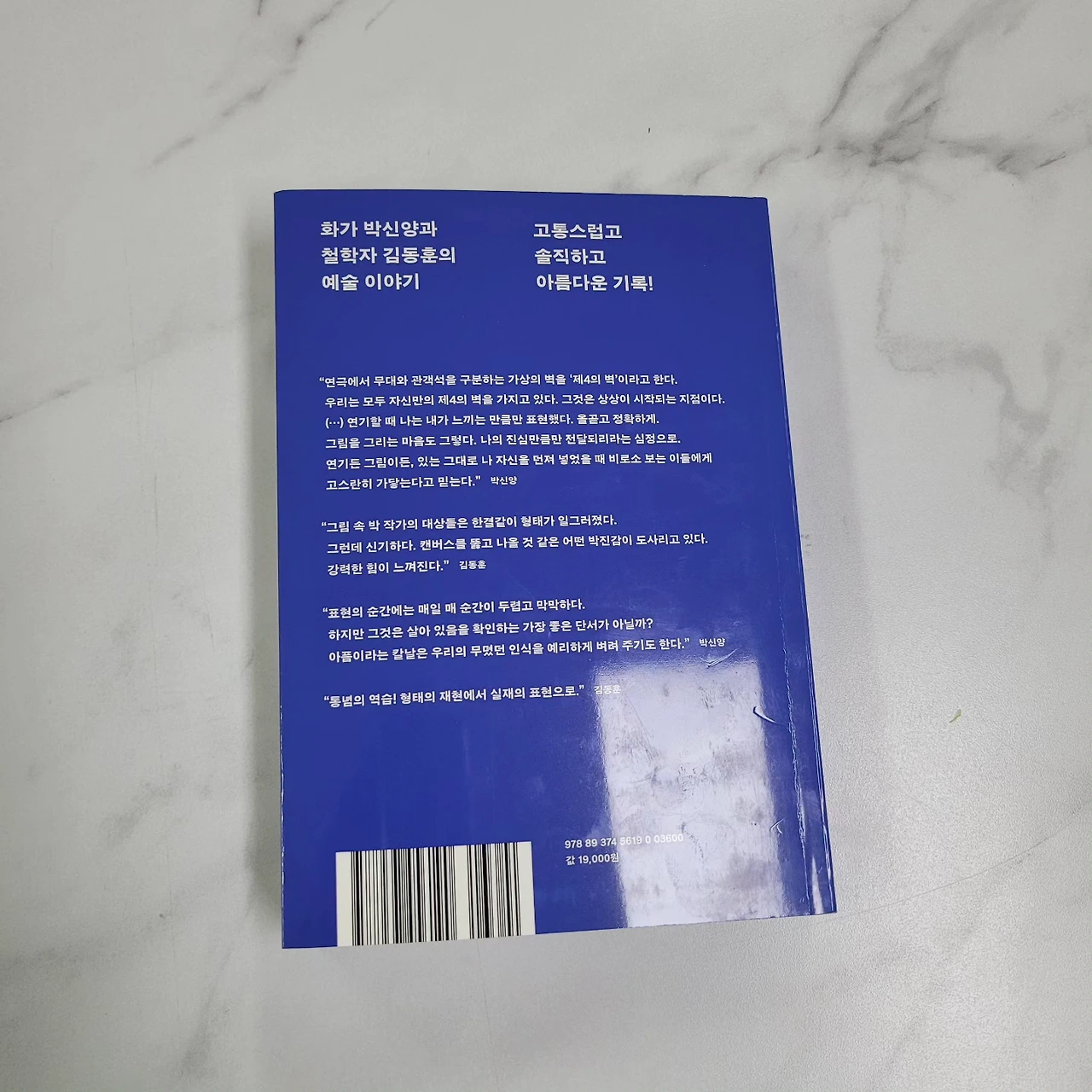 화가 박신양과 철학자 김동훈의 <제4의 벽>은 인간의 표현에 대한 생각과 철학을 담은 책이다. 일반적으로는 이러한 주제는 '표현의 욕구'적 측면에서 얘기할 때가 많은데 이 책은 '표현의 권리'라고 표현한 게 새로웠다. 욕구와 권리는 엄연히 다른 말 아닌가. 표현의 욕구는 '임금님 귀'처럼 참지 못하고 표출하는 느낌이 강하다면 표현의 권리는 누구나 자신의 이야기를 할 수 있다는 내용을 담고 있다. 배우로서 이미 많은 것을 이룬 박신양이지만 배우이기에 자신을 오롯이 표현하지는 못했던 시간을 보냈을 테고, 이제 미술과 글로 그 권리를 행사하고 있는 것이다.