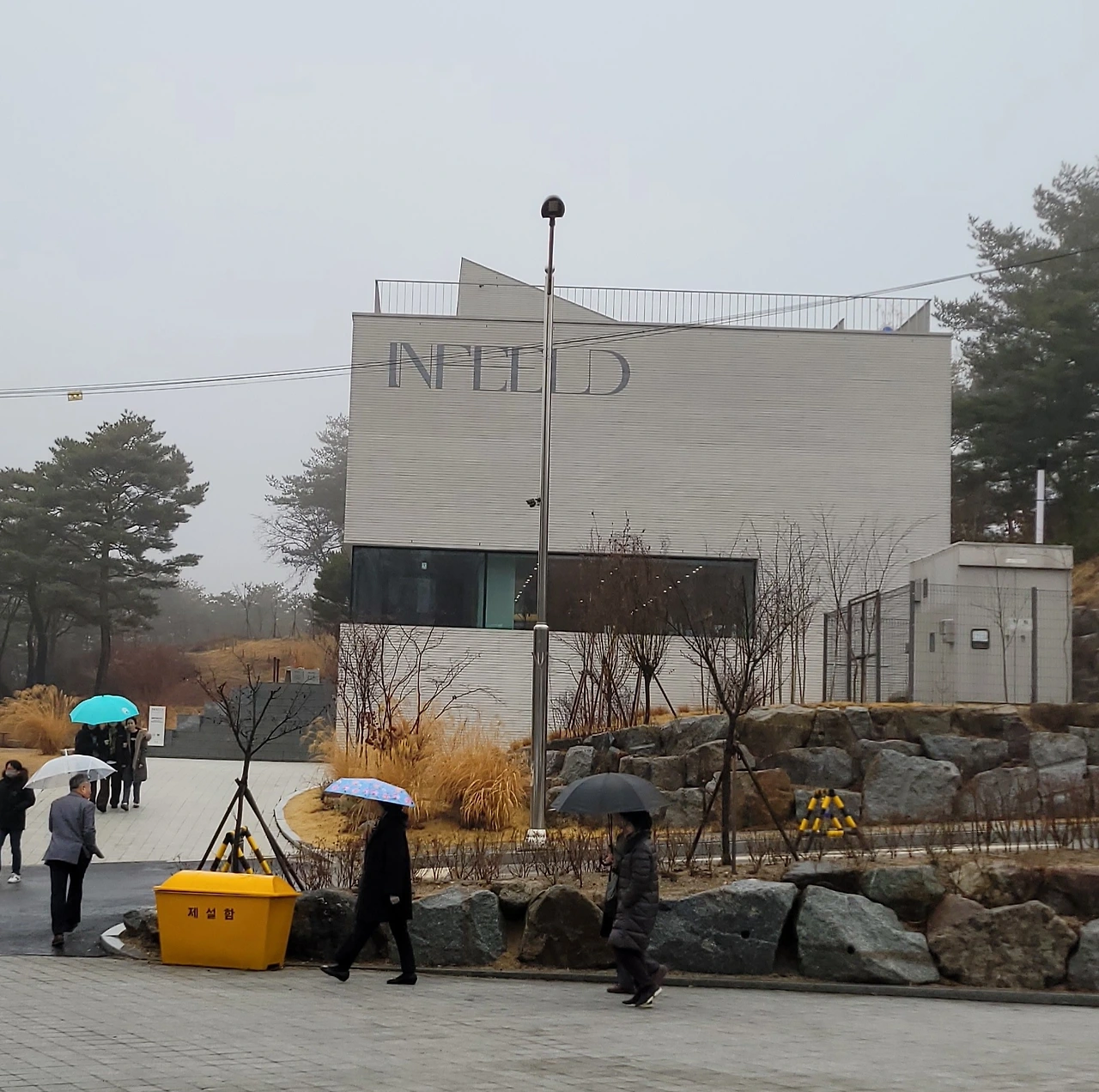 손흥민 선수의 가족이 운영하는 카페로 알려진 춘천 '인필드'에 왔다. 점심시간이 조금 넘은 평일 월요일이지만 방문하는 사람들이 꽤 많다. 손흥민 축구교실을 이용하는 부모님들과 지인들이 기다리고 쉴 수 있는 공간을 제공하고 싶어 만들었다는데 이제는 춘천의 관광지로써 역할도 충분히 하는 듯하다. 나도 양양을 다녀오다 최근에 아시안컵이 끝나고 손흥민 선수에 대한 인성이 재조명되면서 더욱 팬이 되었고 이 기회를 통해 '팬심순례'의 마음으로 왔다. 카페 크기가 작지는 않지만 주말에는 대기하는 사람들이 많겠구나 싶었고 그래서 평일에 이렇게 와서 간단한 음료와 빵, 그리고 잠시나마 글을 쓸 수 있는 나만의 테이블이 확보되어 기분이 더 좋다. 동해를 찍고 서울로 돌아오는 여행의 마무리 공간으로 손색이 없는 곳이라는 생각이 들었다.