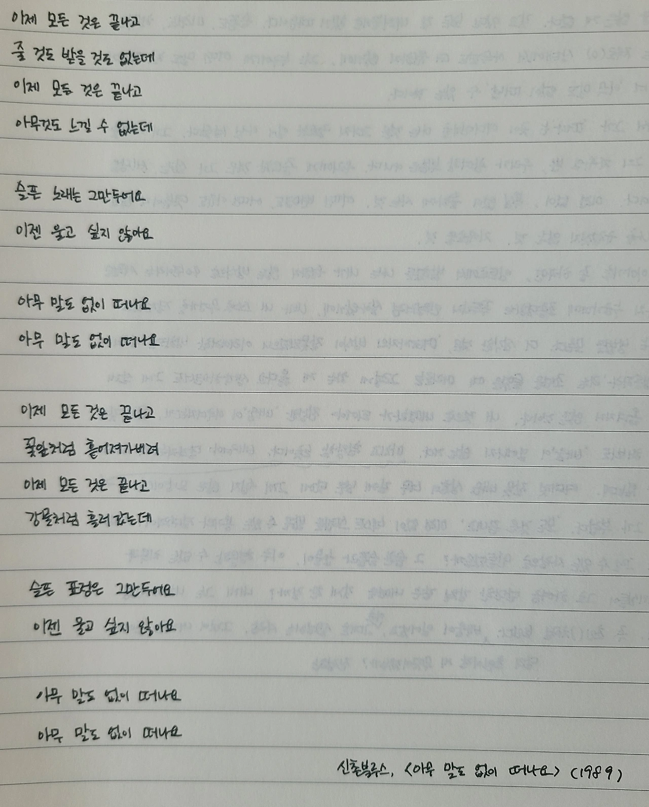 신촌블루스, '아무 말도 없이 떠나요' 가사 전문