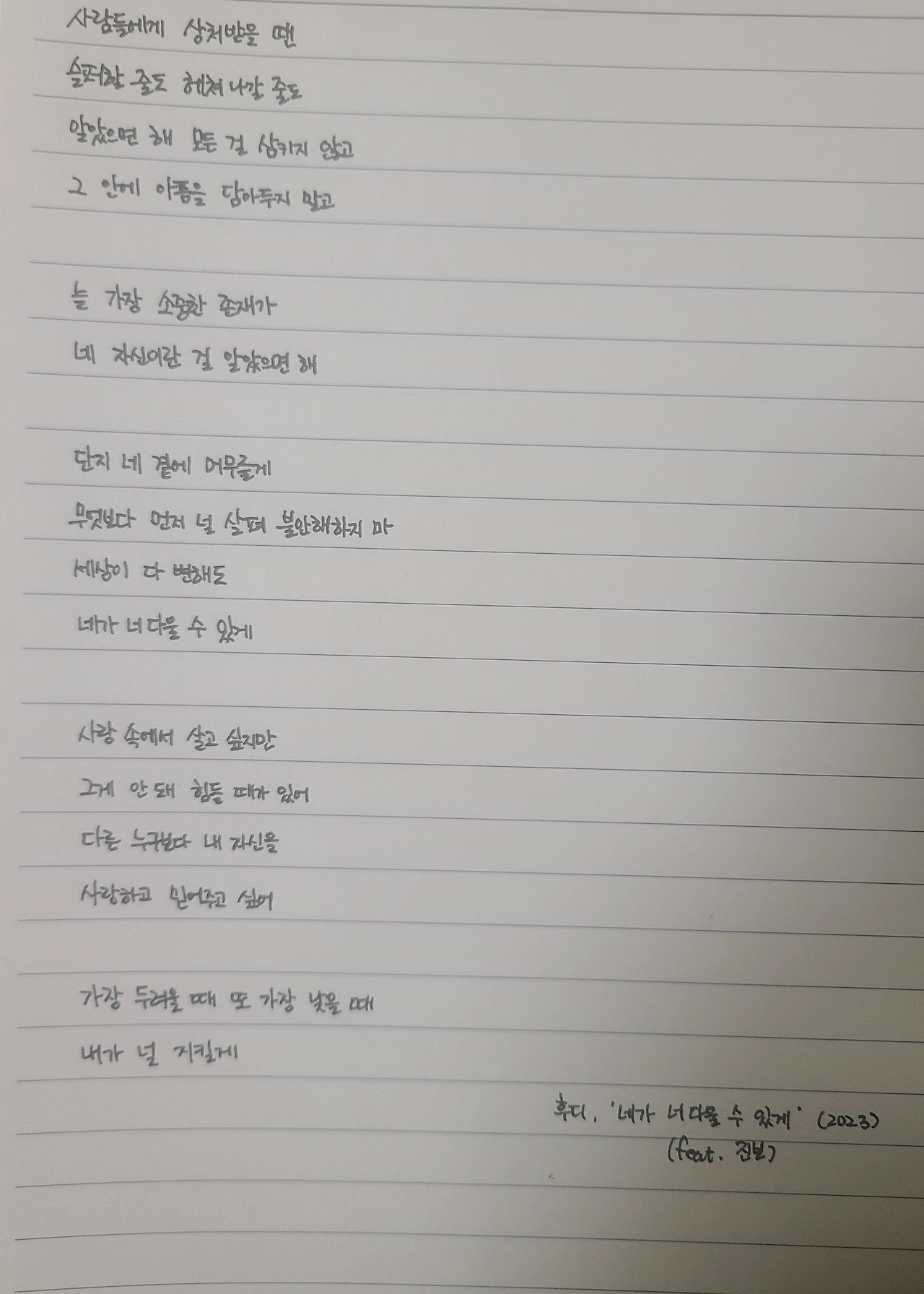후디, '네가 너다울 수 있게 (feat. 진보)' 가사 전문