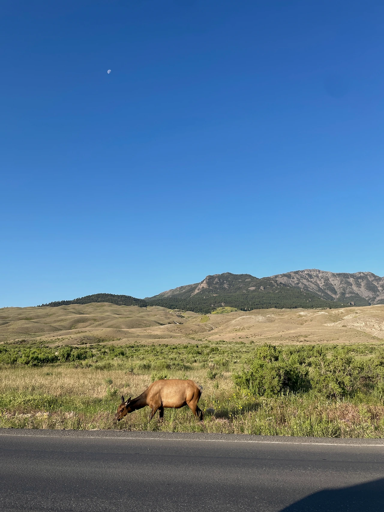 아침 일찍 장을 보러 나섰는데, 예상치 못한 풍경들을 마주했다. 높은 나무 한 그루 없이 탁 트인 풍경, 한참을 돌아 내려가는 길 아래에 작은 마을 하나가 보이기 시작한다. 굽이 굽이 내려가는 길가에 사슴들이 나를 빤히 쳐다본다. 그리고 저 앞에 커다란 아치형태의 게이트가 하나 반듯하게 서있었다. 장을 보러 가는 길이 이렇게 멋질 줄이야.