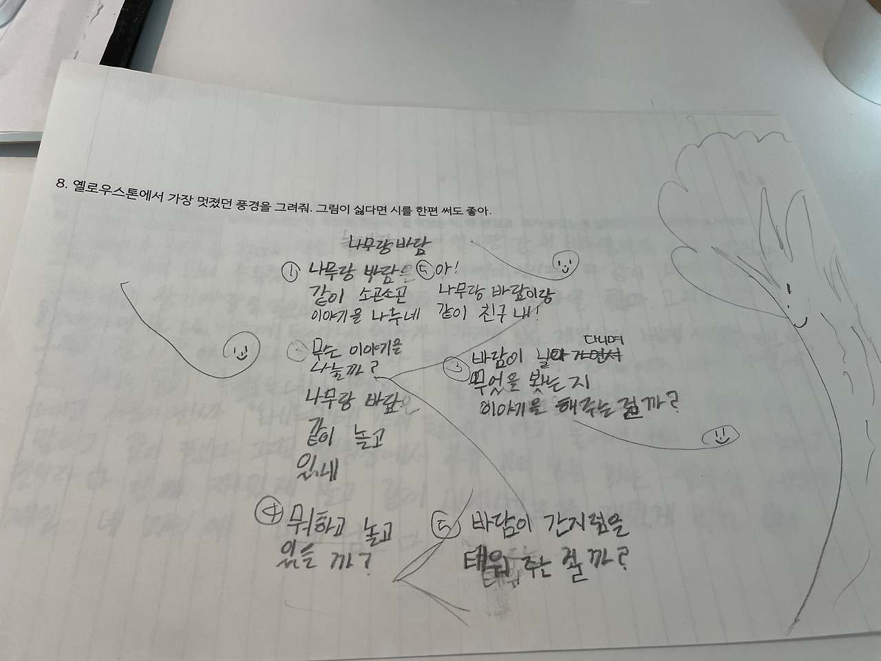 아이들이 시를 쓴다. 나는 생각지 못했던 순간의 이야기가 오고 간다. 써보라고 하지 않았다면 어쩔뻔 했나 싶은 아이들만의 이야기. 여행 일기를 쓰는 아이들에게 이런저런 글감을 던져주면 아이들은 슥슥 생각을 써내려간다. 친구들과 함께 쓰니 더욱 재미있는지, 눈을 뜨면 "엄마, 나 글쓰기 할게." 라고 말하기 시작하는 아이들.