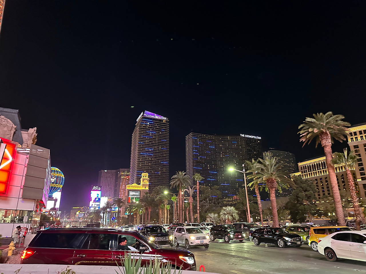 멀리서부터 보이는 화려한 불빛. 반짝이는 것이라곤 하늘의 별빛뿐이던 사막 한가운데에 라스베가스가 모습을 보이기 시작한다. 남편에게는 영화 '라스베가스를 떠나며'가, 나에게는 'O show'를 비롯한 다양한 공연이, 아들과 딸에게는 애니메이션 영화 '싱 2'를 떠오르게 한 도시. 사막을 떠돌다 맛있는 음식과 즐거운 유흥에 빠져들기 딱 좋아 보이는 위치이다.