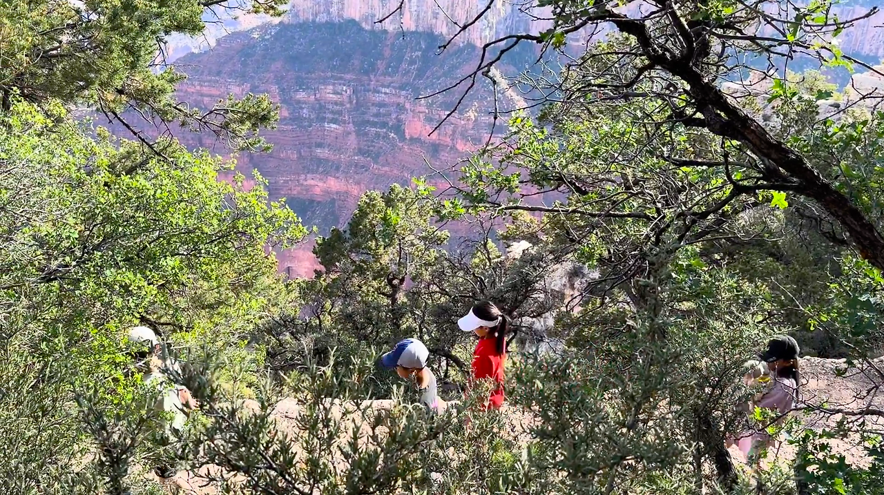 우리는 엄마들이 멋있다고 한 그랜드 캐년을 갔다. 우리는 거기까지 차 타고 먼 길을 갔다. 나는 차에서 내려서 터벅터벅 트레일을 걸어서 올라갔다. 나는 중간에서 멋진 풍경이 보이나 두리번 두리번거렸다. 나는 계속 걸어서 드디어 정상에 도착했다. 그랜드 캐년은 아주 멋있었다. 돌들이 다 뾰족뾰족해서 예뻤다. 우리는 다시 내려와서 차로 가는데 비가 아주 조금 왔다. 우리가 그랜드 캐년을 구경할 때 비가 안 와서 운이 좋았다. 예전에 친구들과 함께 미국에서 여행을 하던 한국 학생이 이곳에서 발을 헛디뎌 추락한 사건이 있었다고 한다. 그리고 퓨마한테 공격받은 사람들도 있어서 조심해야 한다.
