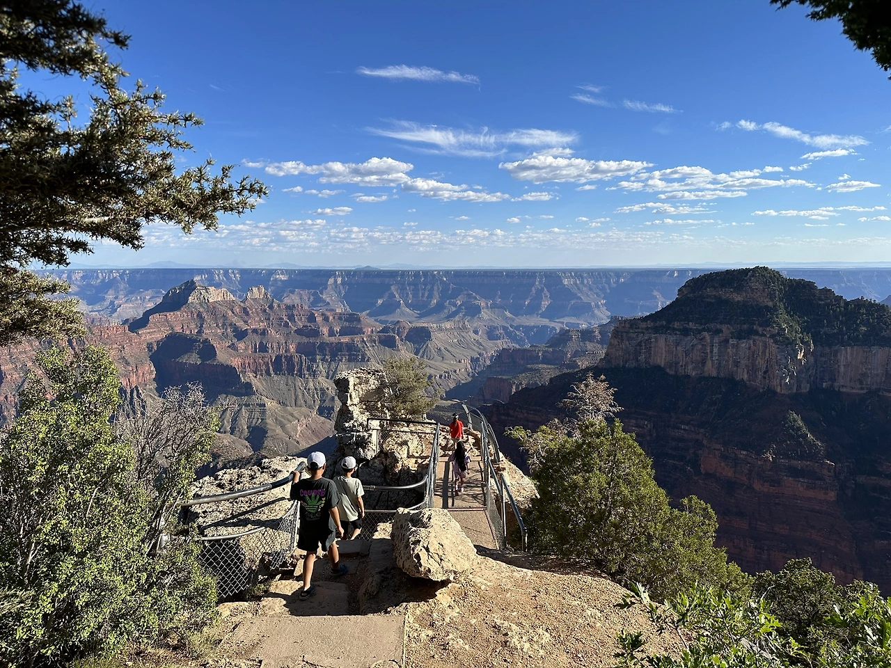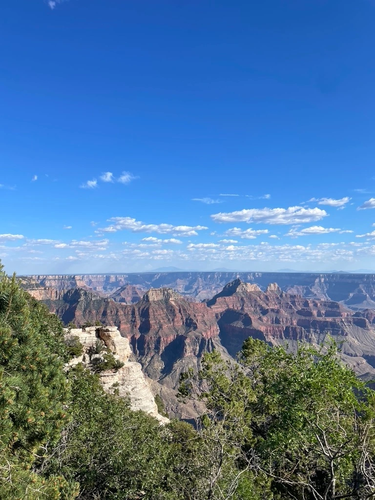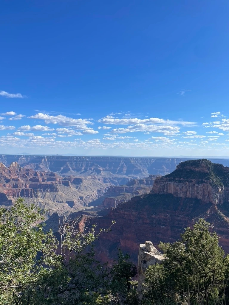 조금 더 발걸음을 옮겨 짧은 트레일 코스로 향해본다. 그리고 얼마 지나지 않아 마주한 풍경은 숨 막히는 웅장함이었다. 이토록 거대한 캐년이 좁은 길의 끝에 숨어있다. 북적이는 관광객도 사진을 찍기 위해 늘어선 사람들도 없는 한적하고 멋진 뷰포인트. 이 어마어마한 곳에 우리만 있는 듯이 거대한 협곡을 그대로 만끽할 수 있는 순간. 조금 멀리 온 덕분에 그랜드캐년을 온전히 느낀 기분이다.