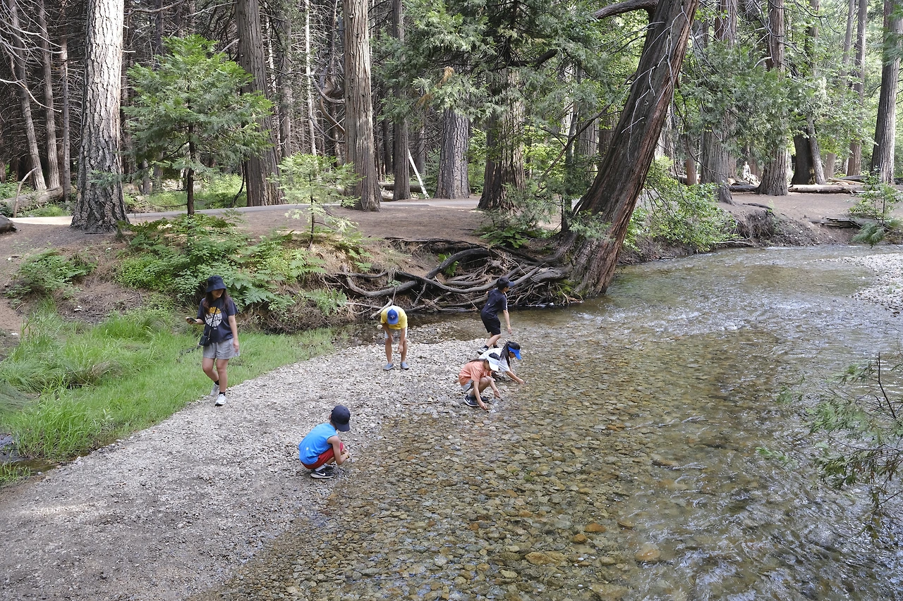 아침에 일어나서 텐트를 열고 나와 보니까 엄청 크고 멋진 절벽이 있었다. 밤에는 깜깜해서 못 봤는데 아침에 보니 멋졌다. 우리는 아침밥을 먹고 자전거를 타러 갔다. 거기에선 우리 사이즈에 맞는 자전거를 찾아야 했다. 근데 지민이 언니, 지성이 오빠, 나는 맞는 사이즈가 없었다. 그래서 모두 자전거를 못 탔다. 자전거를 타고 싶었는데, 아쉬웠다. 점심으로 피자를 먹고서 버스정류장으로 가서 버스를 기다렸다. 버스를 탄 다음에 자리를 잡고 목적지에 도착할 때까지 나는 서연이 언니랑 쎄쎄쎄를 했다. 우리는 버스에서 내려서 폭포로 가는 트레일을 걸었다. 폭포를 가까이 볼 수 있는 곳에 도착해서 사진을 찍는데 폭포 물이 스프레이처럼 튀어서 시원했다. 폭포 앞에서 어떤 사람이 폭포 그림을 그리고 있었는데 아주 잘 그렸다. 나도 그렇게 그려보고 싶었다. 그다음에 계곡물에서 발을 담그고 놀았다. 물은 폭포만큼 시원했다.