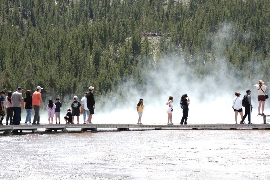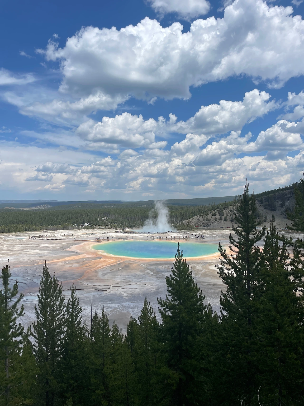 그랜드프리즈마틱 스프링을 보러 갔다. 거기를 보려면 높은데 까지 올라가야 했는데 딱히 힘들진 않았다. 위에서 그랜드 프리즈마틱 스프링을 봤을 때 색깔이 너무 예뻐서 깜짝 놀랐다. 밑으로 내려가서 그랜드 프리즈마틱 스프링을 봤을 땐 위에서 본만큼 예쁘진 않았다. 거기에선 엄청나게 지독한 방귀 냄새가 나서 코가 썩는 줄 알았다.