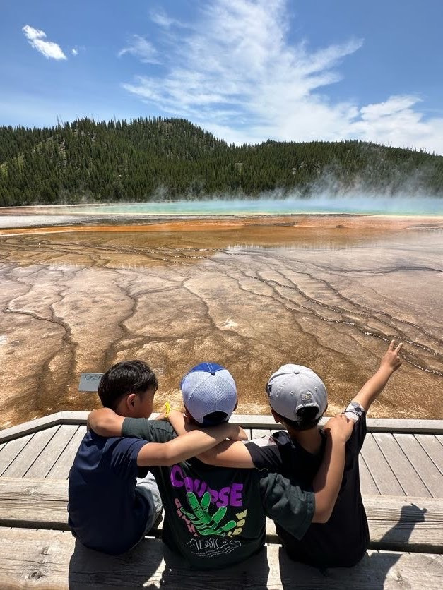 나에게 가장 인상 깊은 곳은 여행의 둘째 날 들린 미국의 가장 큰 온천인 그랜드 프리즈마틱 스프링이다. 그랜드 프리즈마틱 오버 뷰 트레일을 올라가 온천의 뷰를 보았다. 나, 지민, 연우는 올라가며 무서운 이야기를 돌아가며 한 명씩 했다. 무서운 이야기를 하다 보니 트레일 끝에 와있었다. 처음에는 작은 것만 보다 갑자기 큰 스프링을 보니 정말 놀랐다. 온천의 오색빛깔이(주황, 노랑, 초록, 연파랑, 파랑, 보라) 정말 예뻐서 나는 내 핸드폰으로 사진을 정말 많이 찍었다.