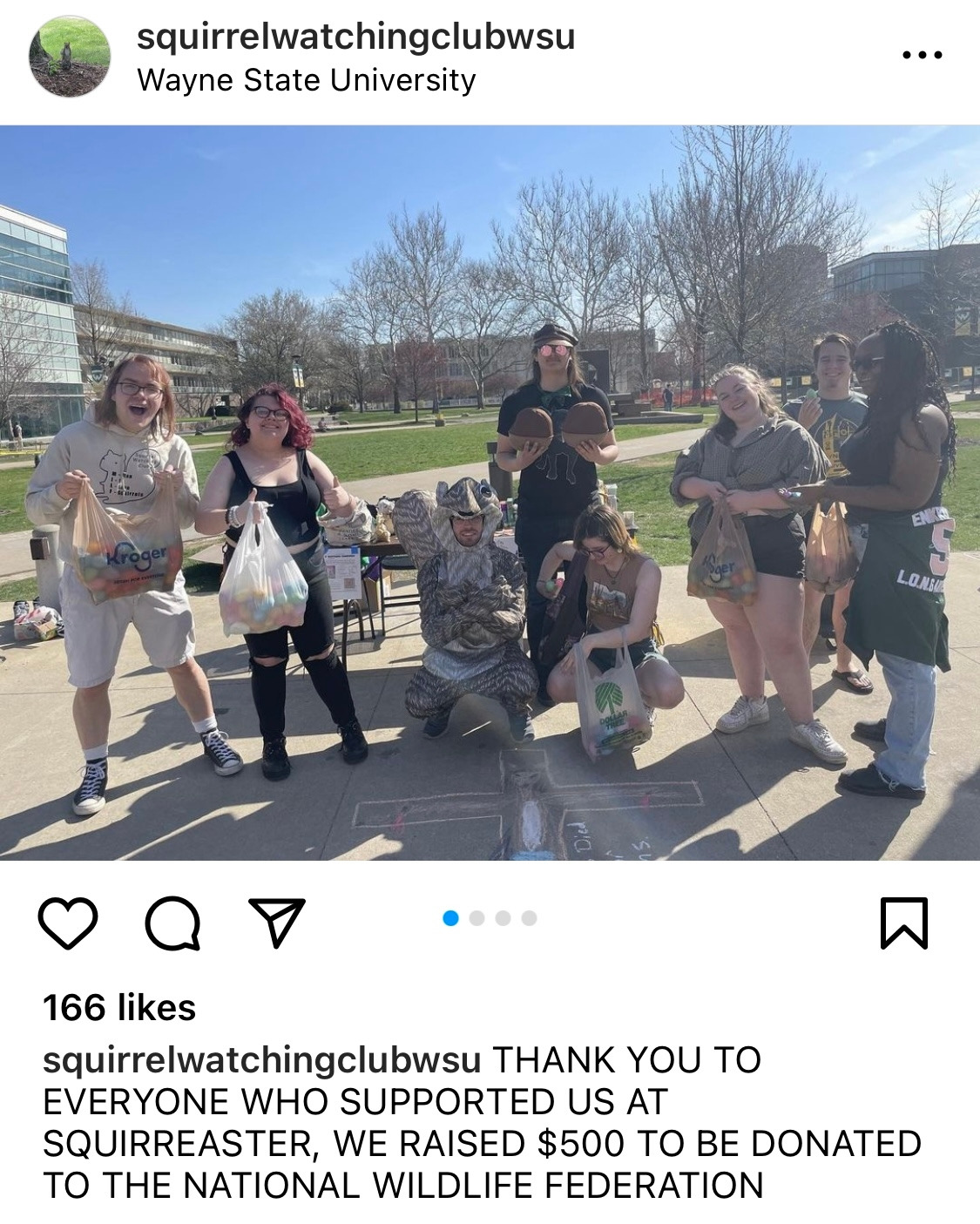 웨인주립대에는 2022년도에 갓 시작된, 학생들의 사랑과 관심을 한 몸에 받는 청설모 관찰 동아리가 있다.