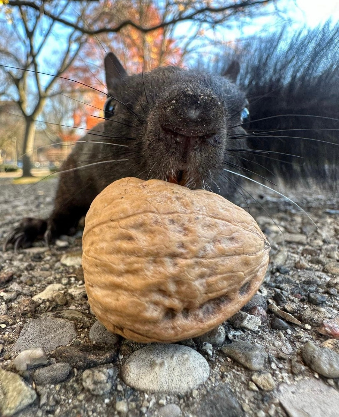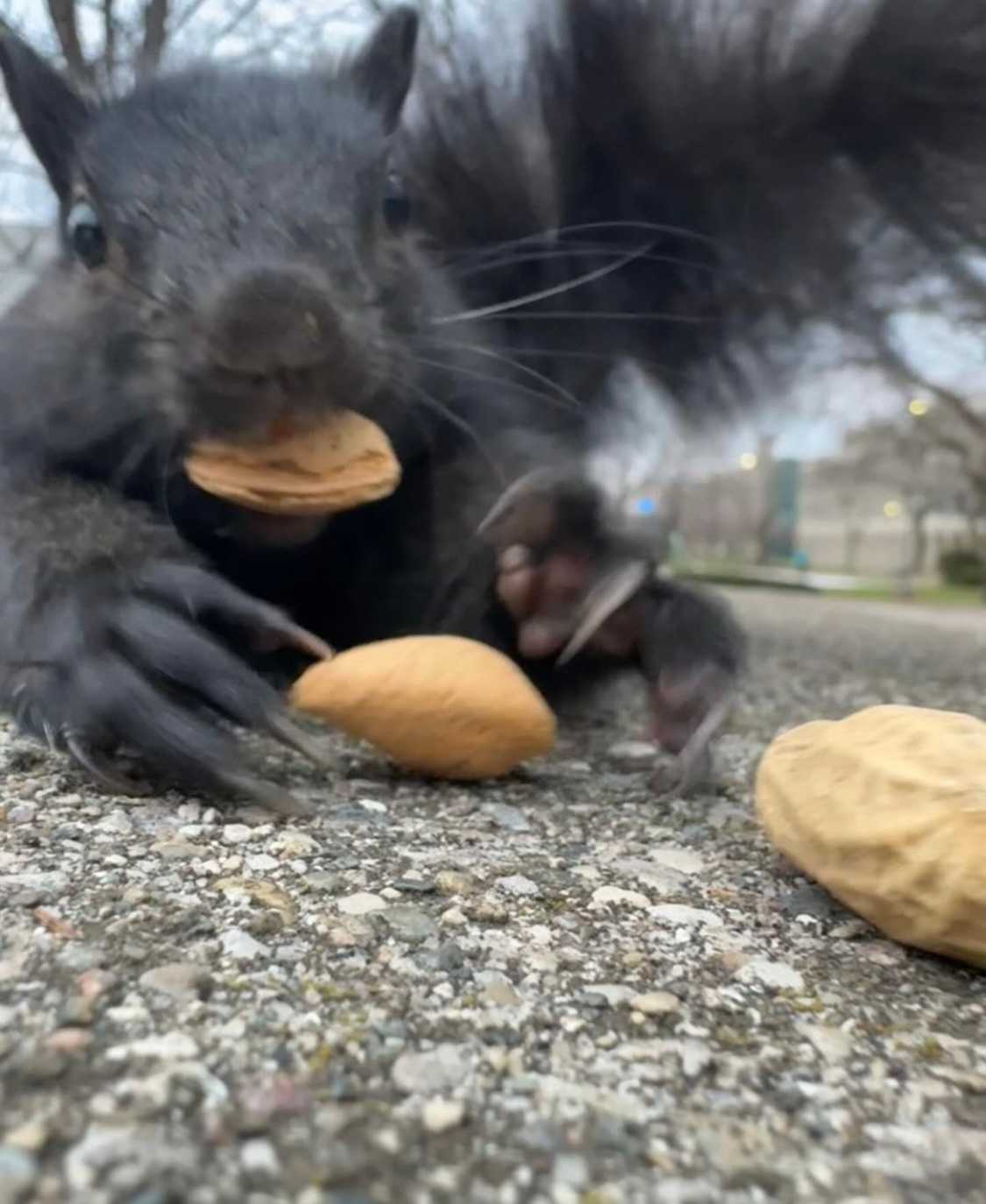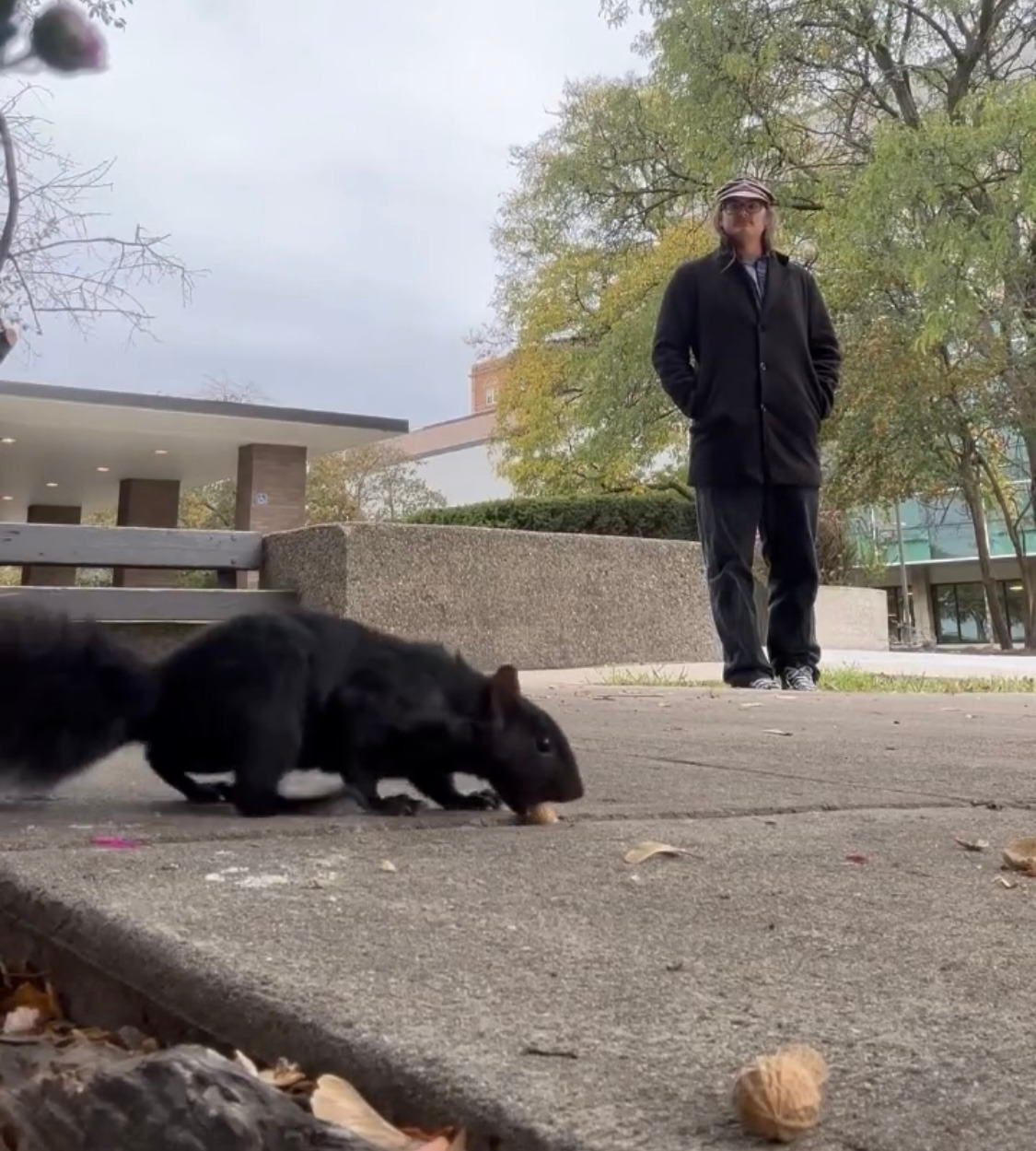 이들은 청설모 밥 주기에 꽤나 진지한 만큼 청설모 사진 찍기에도 진심이다. 던져서 밥주기, 바닥에 놓고 올 때까지 기다리기, 넛츠로 유인해 바지를 타고 올라오면 주기 등등 다양한 방법을 쓰는 듯하다..