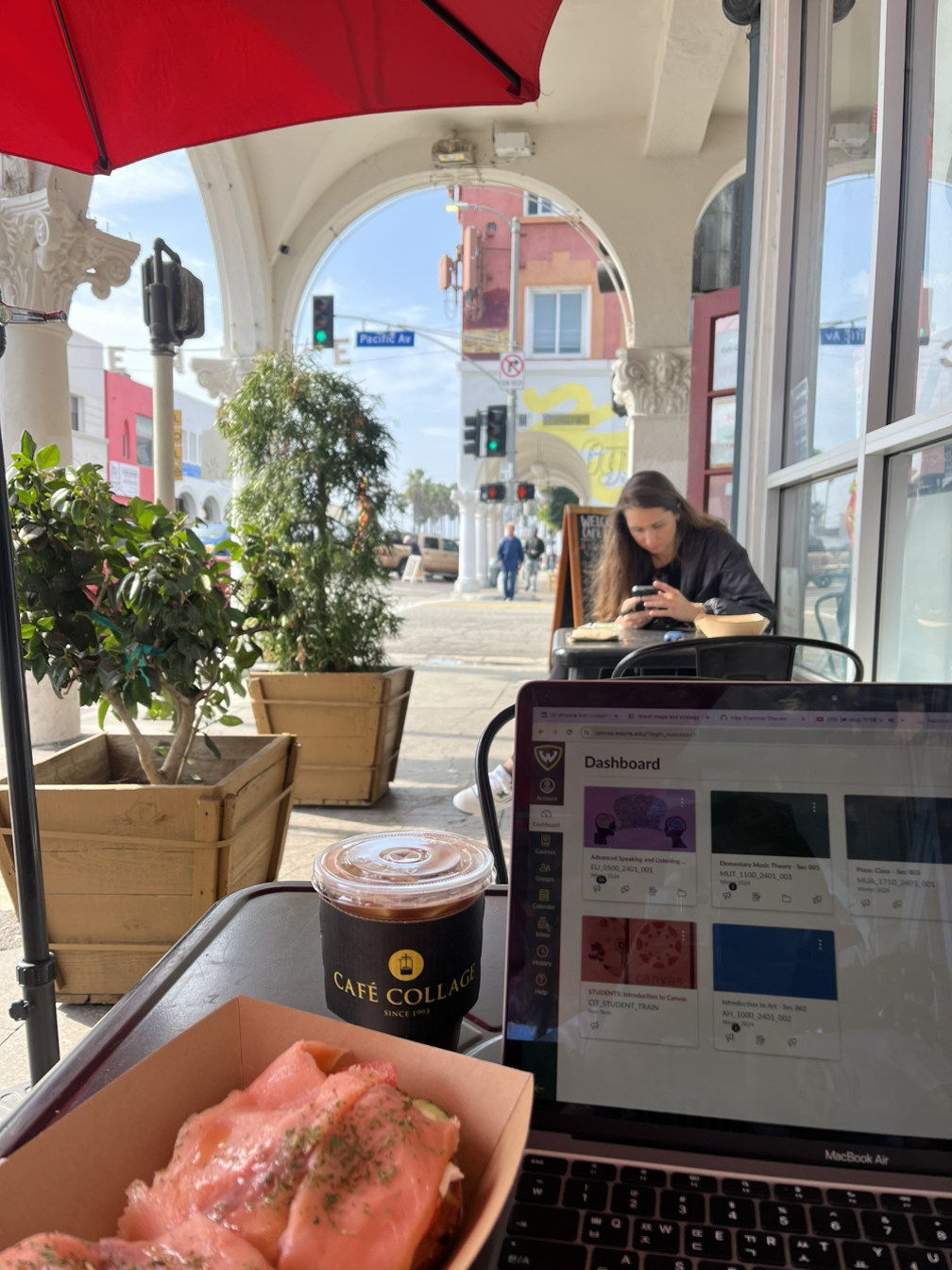 베니스 비치에서의 마지막 날. 친구는 아침 비행기라 먼저 떠나고, 여유롭게 일어나서 체크아웃을 한 뒤 짐을 맡기고 근처 브런치 카페에 들렀다. 여행하느라 밀린 과제를 폭풍 몰아치기로 끝내고, 환상적인 연어 베이글을 즐기며 유튜브를 봤다. 낭만이다!