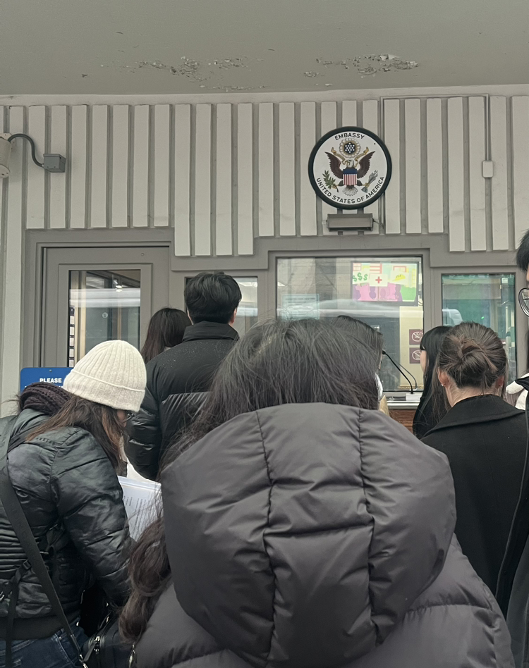 그리고 또 비자 인터뷰 줄에서 40분가량을 대기했는데, 바로 내 앞에 선 남자가 여자 영사님에게 그린레터(비자 거절 서류)를 받는 것을 보고 등골이 오싹해졌는데, 정말 0.5초 간발의 차이로 왼쪽 사람이 먼저 나가 다행이게도 왼쪽에 계셨던 남자 영사님과 인터뷰를 볼 수 있었다.
