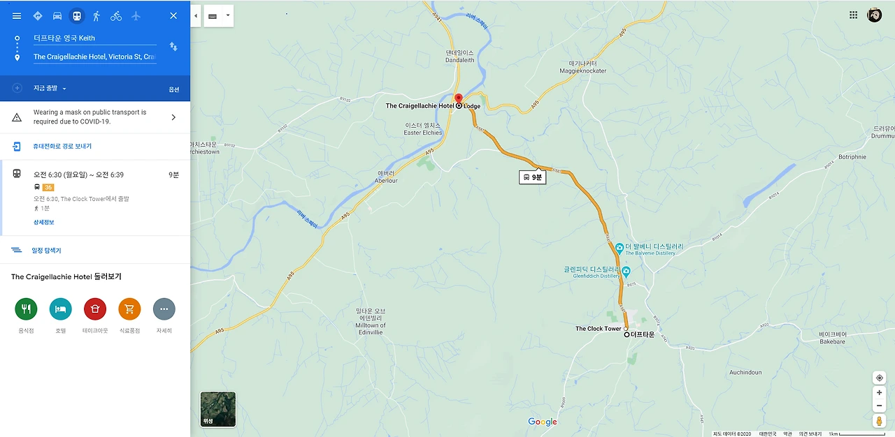 첫 번째 숙소는 The Craigellachie Hotel이었다. 크라이겔라키 호텔을 선택한 이유는, 여행지에 대한 정보가 매우 없던 터라 돌발상황에서 언제든지 스케줄을 유동적으로 변경할 수 있도록 유명한 증류소들을 차로 30분 안팎으로 이동할 수 있는 위치이길 바랬고, 스코틀랜드 관광홈페이지에서 찾아보니 스페이사이드 강 위 Craigellachie 다리와 매우 가까워서 걸어서 구경 갈 수 있었기 때문이었다. 무엇보다 'Copper Dog'(위스키를 오크통에서 떠올릴 때 사용하는 도구 이름)이라는 호텔 내 위스키바가 평점이 높아서 기대되었다.