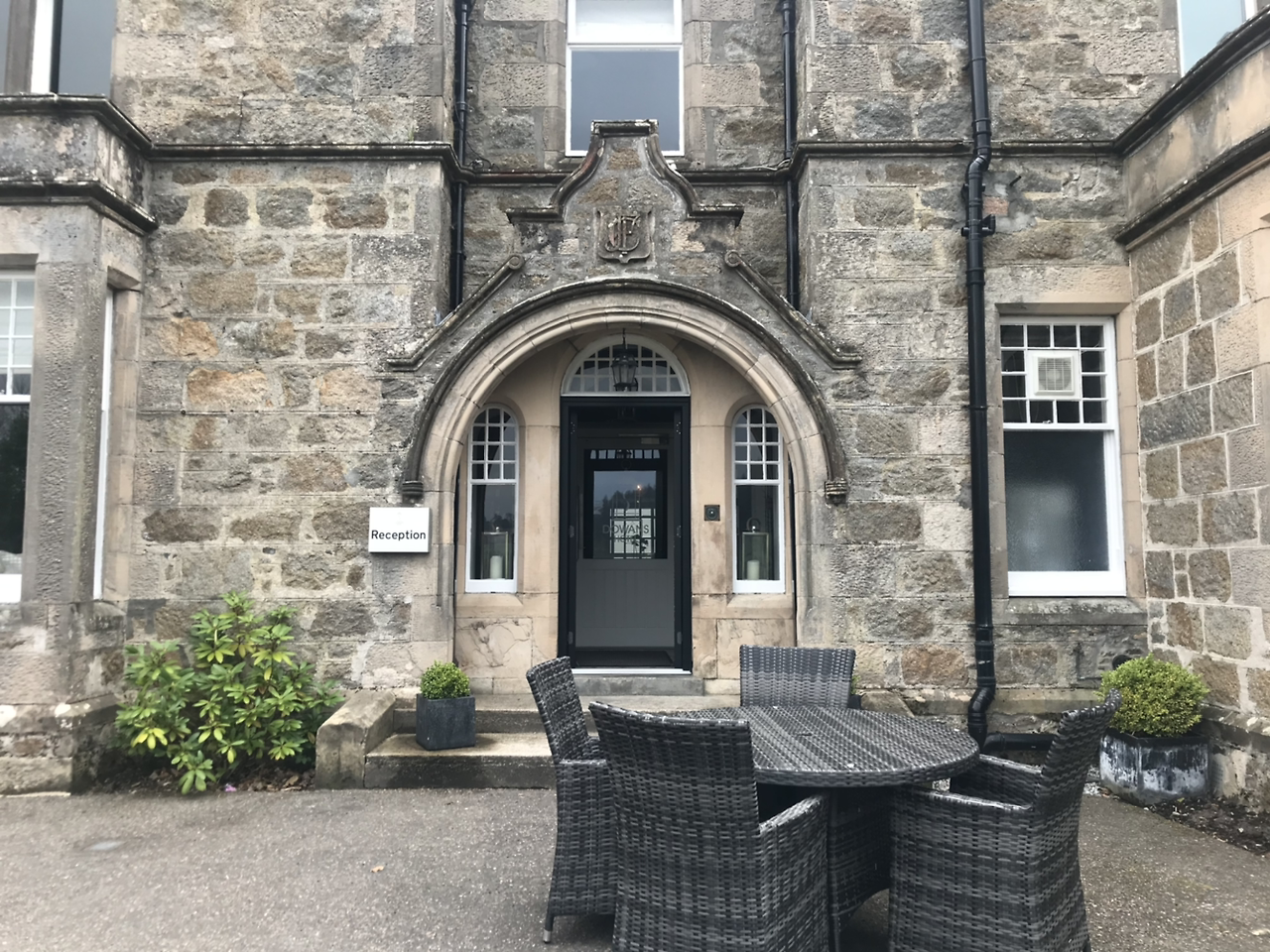 그리고 두 번째 숙소로 이동했다. 첫 번째 크라이겔라키 호텔과 차로 10분 정도 떨어진 도완스호텔(Dowans Hotel)이다. 크라이겔라키가 4성급, 도완스가 3성급이었는데, 도완스호텔이 오히려 1박 비용이 더 비쌌고 (약 30만 원) 개인적으로 도완스 호텔이 더 아기자기한 것들이 많아서 좋았다. 스코틀랜드 가족이 빅토리아 시대 건물을 개조하여 운영을 시작해서 외관과 정원도 고풍스럽게 아름답고, 스페이 강이 보이는 멋진 뷰와 정말 맛있었던 레스토랑 때문에 스페이사이드 최애 호텔이다. 전반적으로 나무와 화초들로 호텔이 둘러싸여 있는 느낌이었고, 큰 창문 넘어, 혹은 곳곳의 테라스에 서서 스페이 강과 광활한 언덕들을 볼 수 있다.