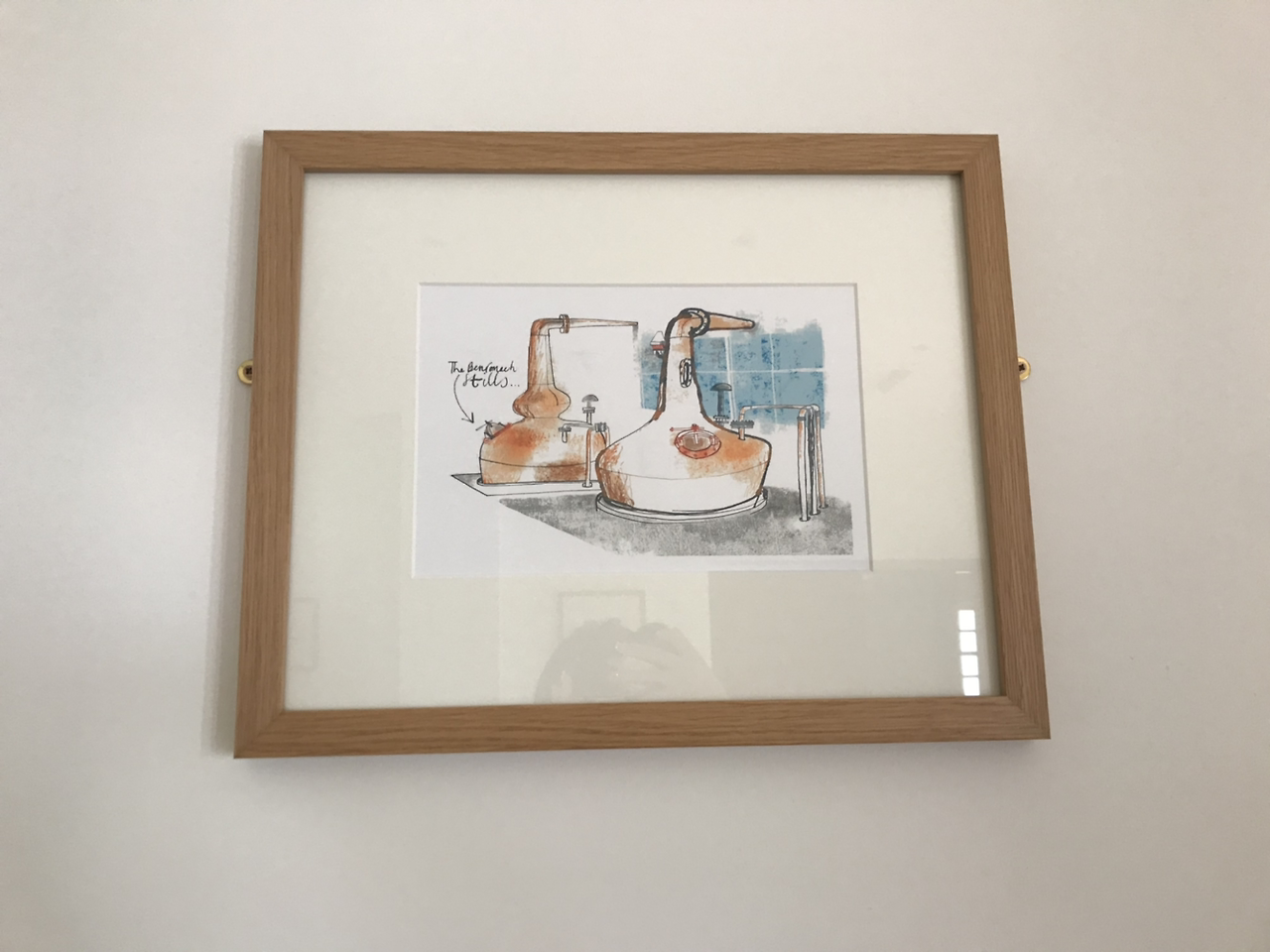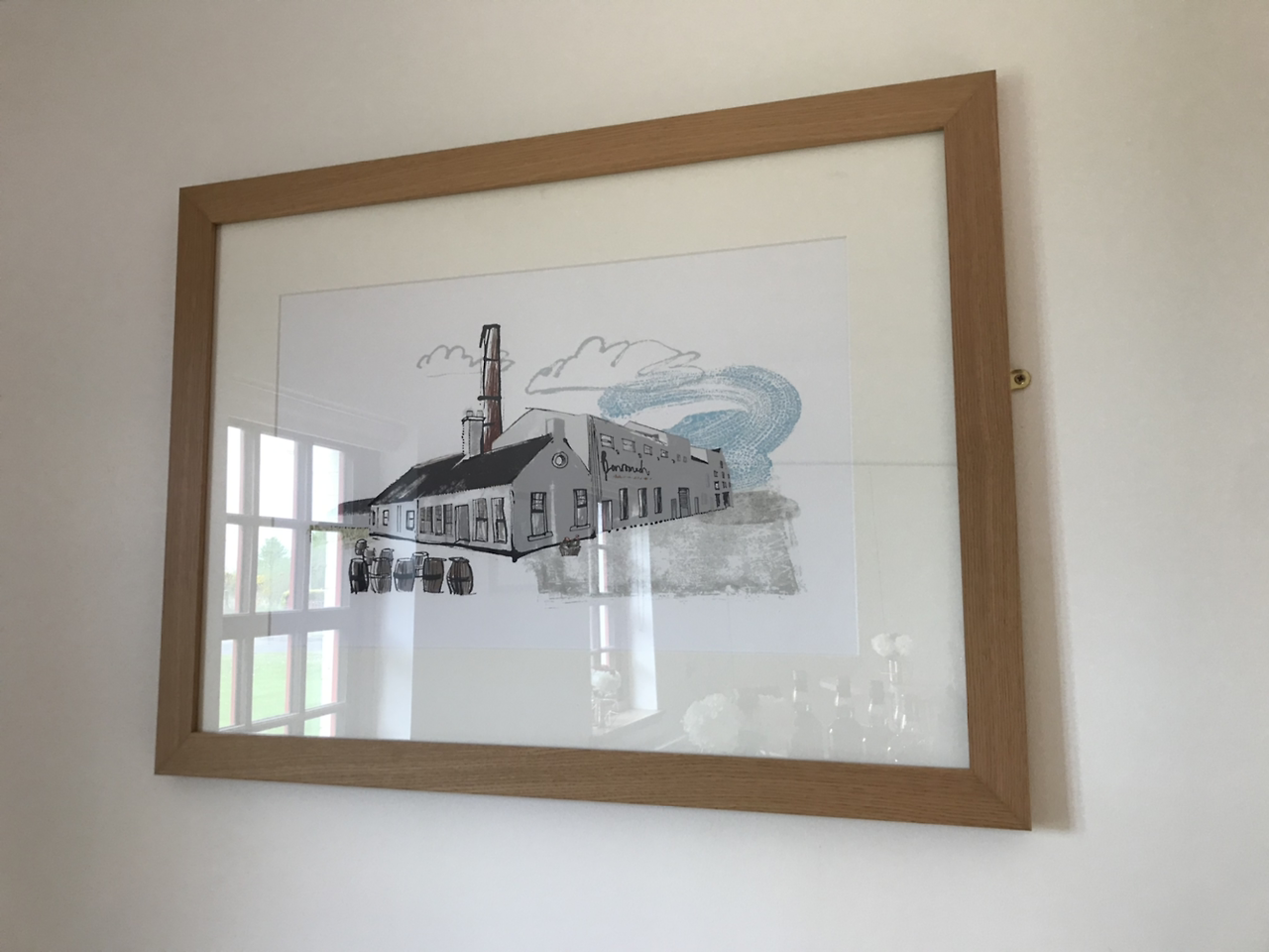 그리고 매쉬툰과 워시백이 있는 공간으로 안내받았다. 전통을 고수하는 증류소답게 내가 좋아하는 나무 워시백의 검게 변한 모습도 볼 수 있었다. 벤로막 위스키는 전체적으로 약한 피트 향을 품고 있는데, 과거에 스페이사이드도 석탄을 공급하기 어려워 피트를 주로 사용했었기에, 계승하는 의미로 현재까지도 피트를 사용하고 있다고 한다. (스페이사이드 피트는 아일라 피트보다 페놀 수치가 낮아서, 아일라 보다는 피트 향이 옅다.) 증류소 외부도 둘러보고, 마지막으로 테이스팅룸에 도착했다. 꽃과 그림액자들로 꾸며진 넓은 테이스팅 룸에서 충분히 우리끼리의 시간을 가질 수 있었다.