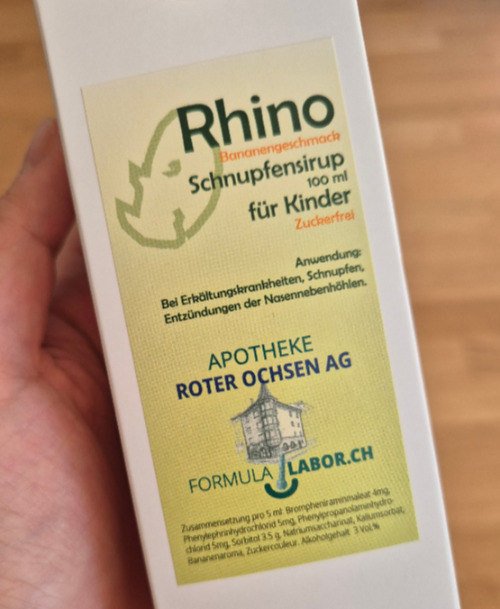 그 약국에서 제조한 코뿔소(Rhino) 어린이 감기약