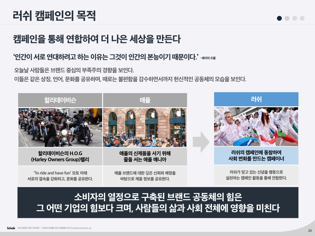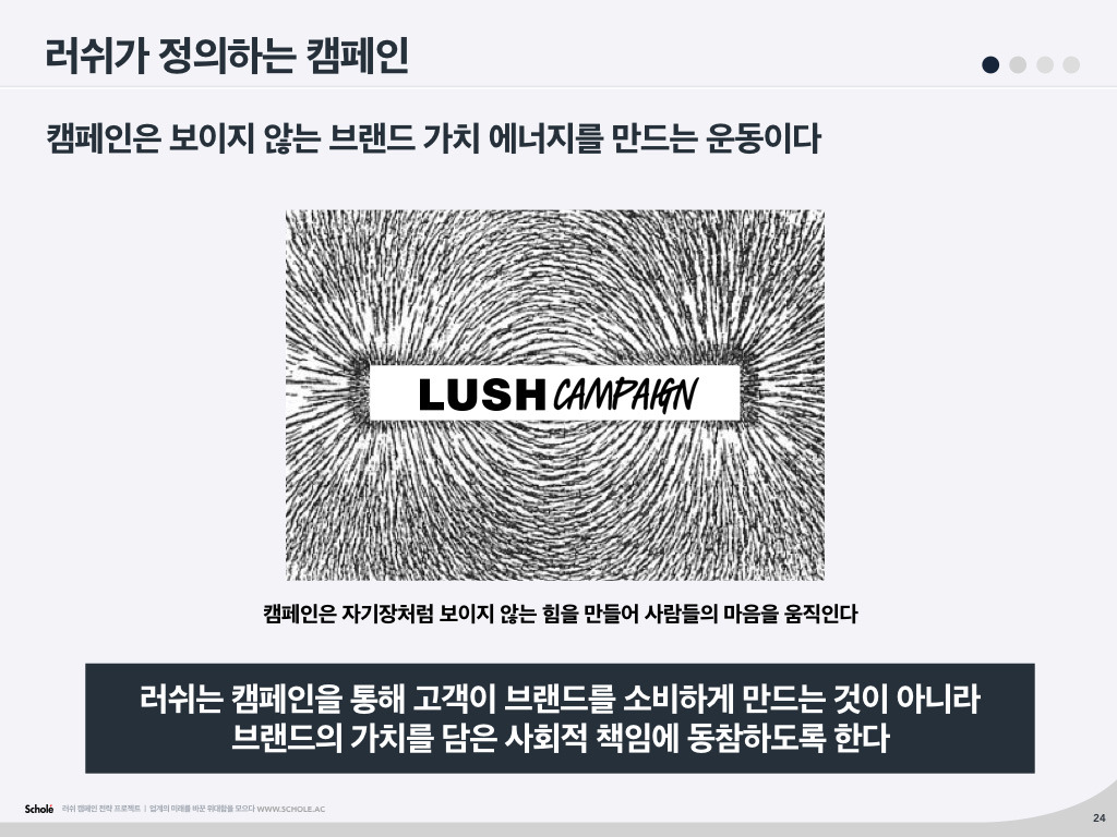 브랜드의 특이한 공동체 현상은 브랜드가 두 가지 문화인류학적 원칙을 상품으로 전환시키고 이미지로 승화했기 때문이다. 러쉬는 가장 독보적으로 시장에서 존재하고 있는 문화인류학적인 브랜드다.