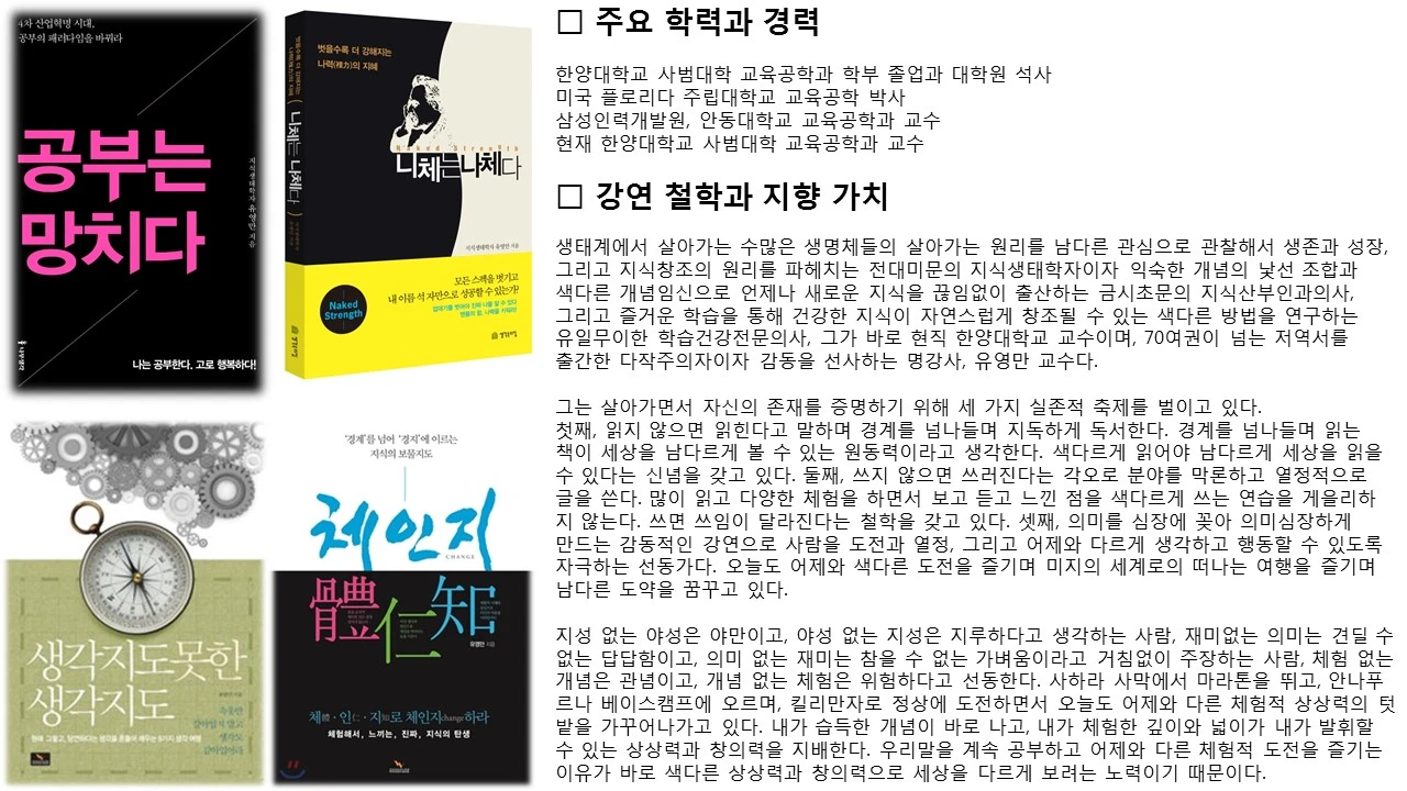 22년동안 80권의 책을 쓴 지식생태학자 유영만 교수의 기보