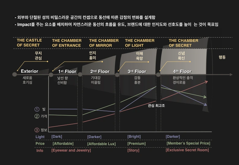 단순히 동선을 고려하는 데서 끝나는 것이 아니라 이동 시간, 시선의 흐름 등까지 모두 세세하게 고려해야 한다.