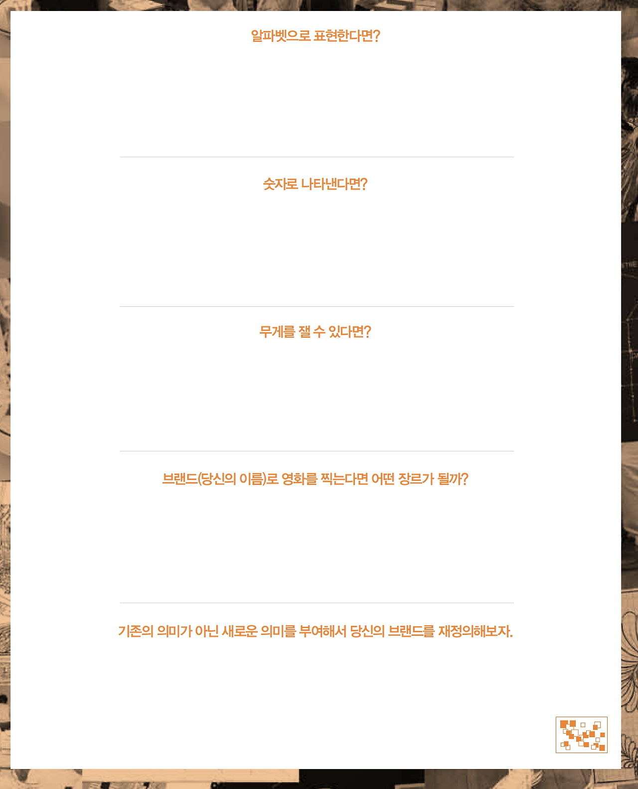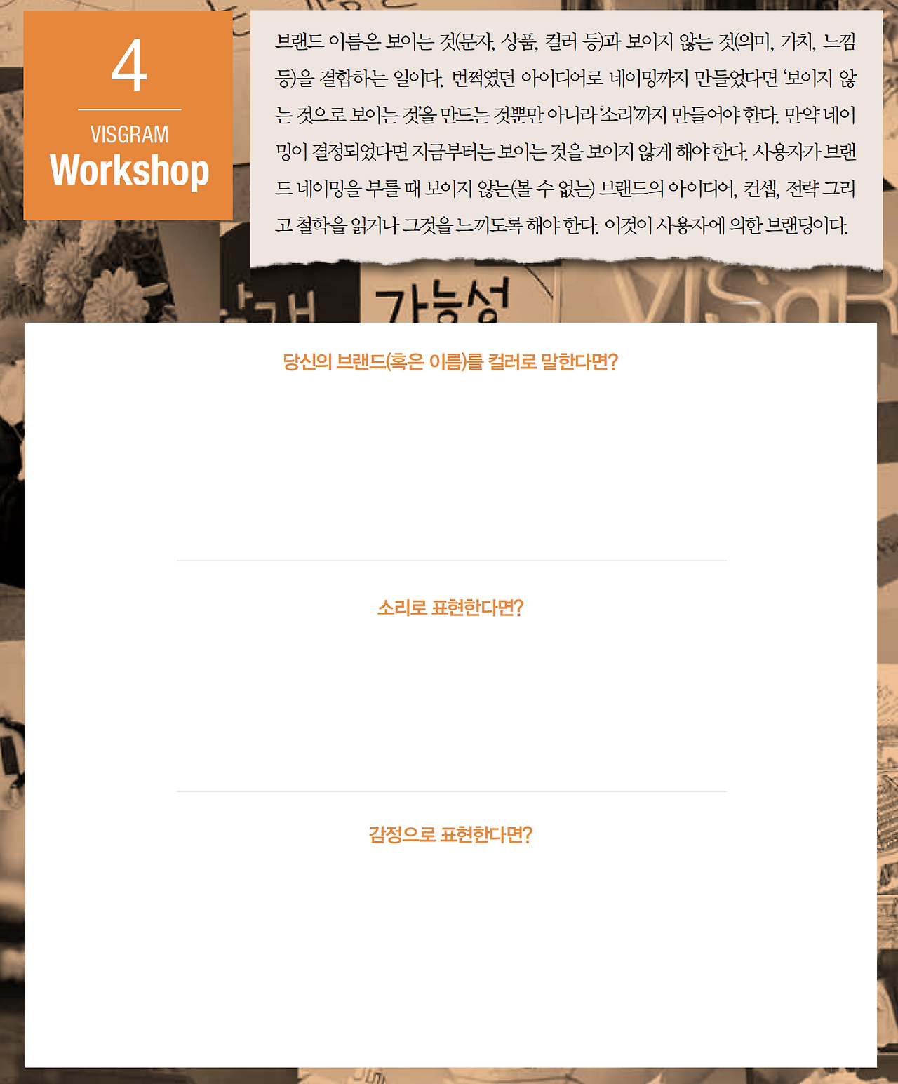 “솔직히 브랜드에 관한 이해는 더욱 혼란스러워. 책으로 공부할 때는 좀 알 것 같았는데, 브랜드를 실제로 만드는 교육을 받으니깐 더 복잡해지고 어려워지는 것 같아. 하지만 명확하게 알게 된 건 브랜드가 아니라 비스그램이야.”