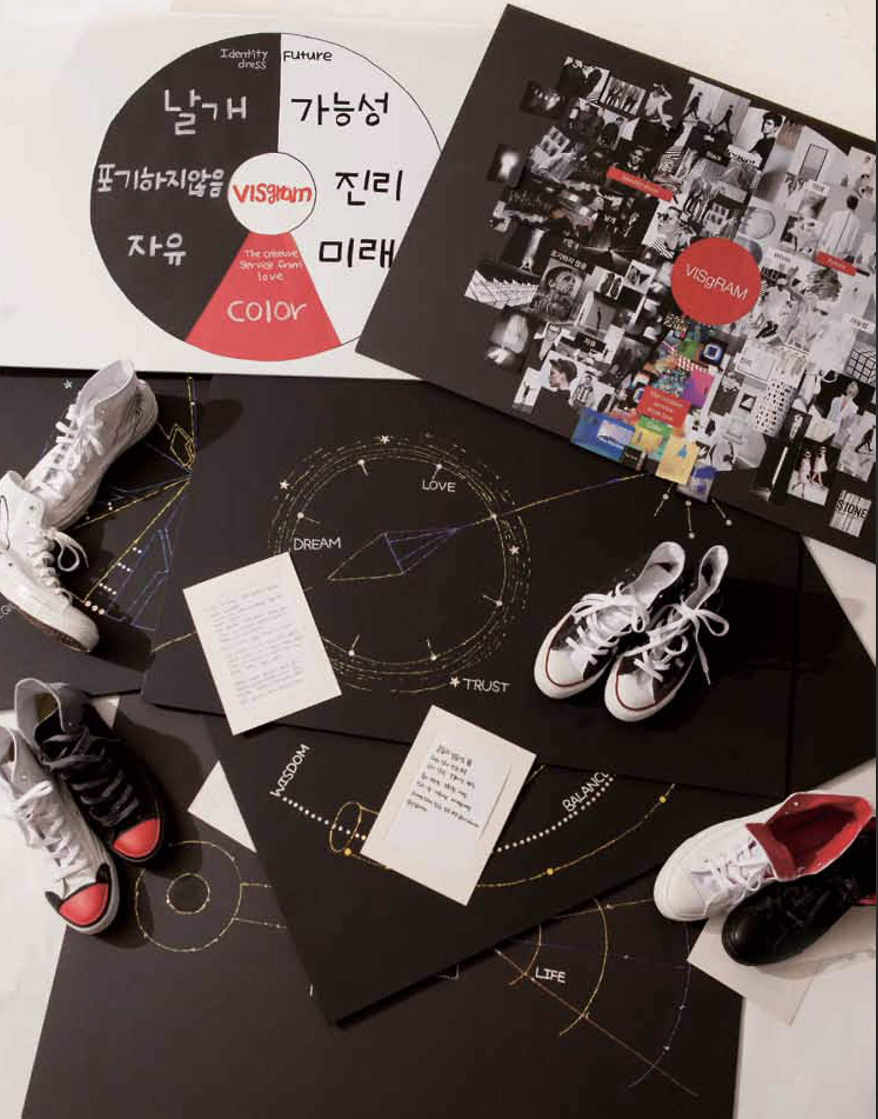 “저도 비스그램의 블랙 앤 화이트 매장에 있는 컬러를 나침반의 자침으로 보여주고 싶었어요. 시온이가 변하지 않는 가치를 찾는 브랜드를 만들고 싶다고 했잖아요. 나침반은 항상 진북을 가리키는데 제가 그린 나침반 별자리는 진북 보다 진실을 가리키고 있다고 표현하고 싶어요.”