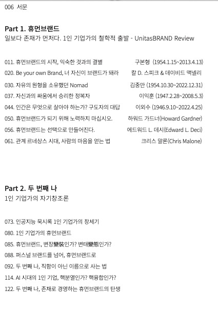 2025년 마지막 호로 출간한 『엔텔러키 브랜드 Vol.3』의 주제는 ‘1인 기업가의 휴먼브랜드’입니다. 이 주제는 시즌 1 『유니타스브랜드』에서 2014년 ‘골목 브랜드’라는 특집으로 다루었고, 같은 해 ‘유니타스브랜드 골목대학’을 열어 1인 기업가에 대한 브랜드 교육으로도 확장했습니다. 휴먼브랜드 역시 시즌 1에서 브랜드십처럼 세 차례나 다루었던 주제입니다. 저희가 이 주제를 끊임없이 다룬 이유는 단 하나입니다. 앞으로 인공지능의 발전과 함께 1인 기업은 핵분열처럼 기하급수적으로 많아질 수밖에 없기 때문입니다.