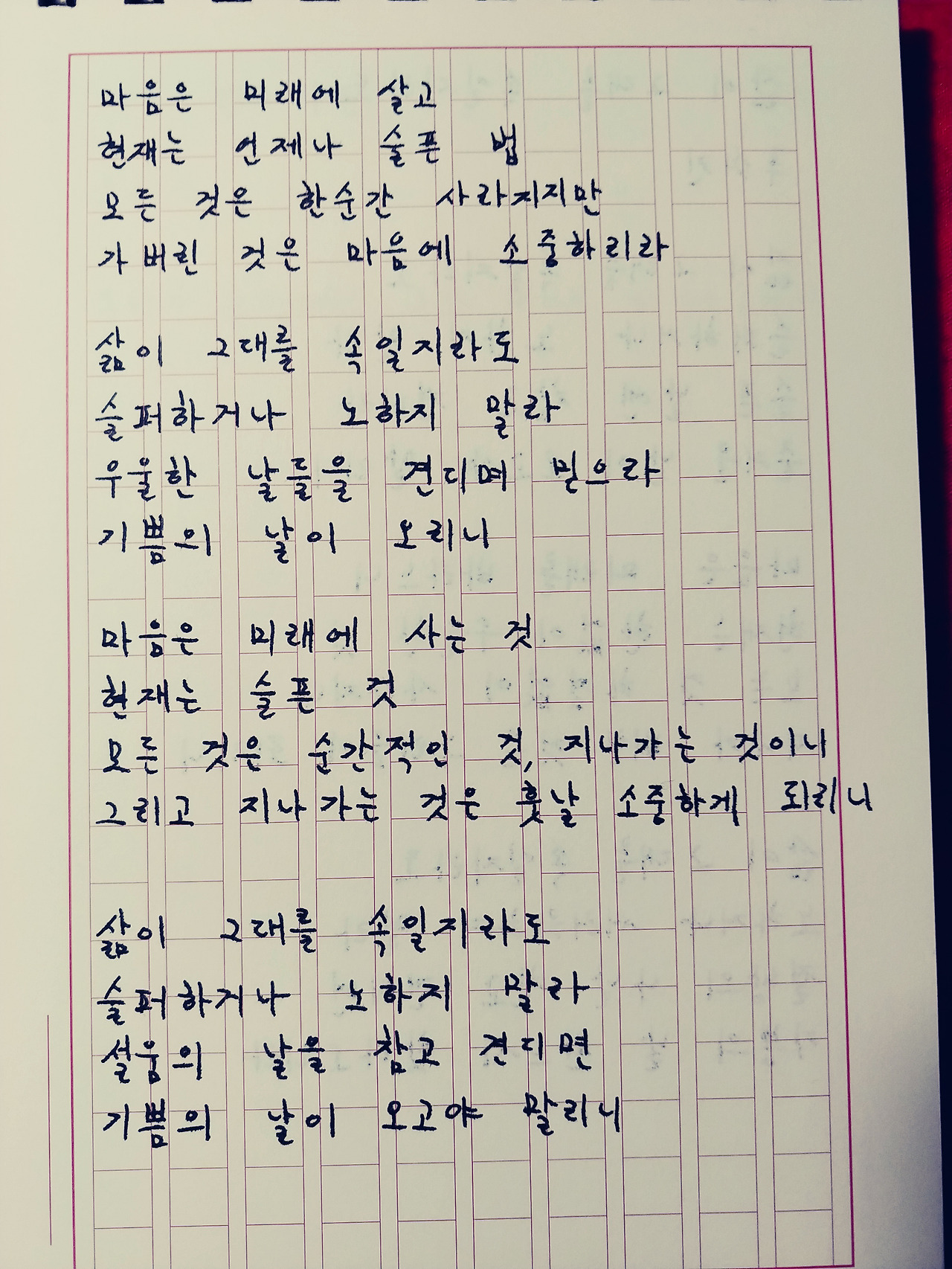 하지만 이유없이 그러고 싶다.혹 내가 부족해 이유가 필요하더라도그 이유가 '기쁘고 즐거운 날 올 것이기 때문'만은