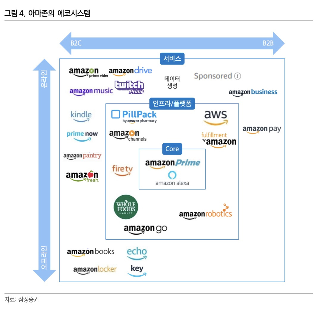 그리고 이번 코로나 사태는 아마존의 잠재 가능성을 여실히 보여줬다. 언택트라는 키워드를 기반으로 오프라인에서 온라인으로 모든 산업이 변화하는 데 있어 평소 사용하는 소비재부터 시작해 이제는 모든 제품을 아마존을 통해 살 수 있어졌기 때문이다.