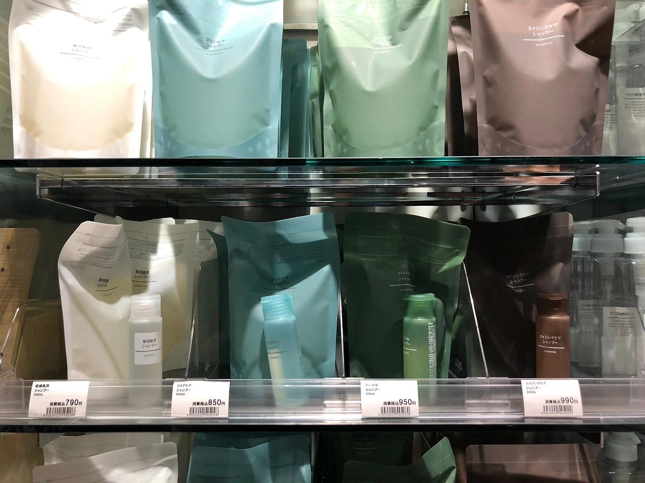 사실 가장 관심이 많았던 공간은 3층 화장품이 있는 공간이었습니다. 아무래도 지금 와이프와 제가 둘 다 화장품 회사를 다니다 보니 더 관심이 갔는데요. 한국 무인양품에 있는 것보다 종류는 많았지만, 피부 타입에 맞춰 딱 필요한 제품들만 판매하는 것을 볼 수 있었습니다. 그리고 무엇보다 리필용 패키지와 펌프를 별도로 판매하여 각자 원하는 형태의 용기를 만들어서 사용할 수 있다는 점이 인상 깊었습니다.