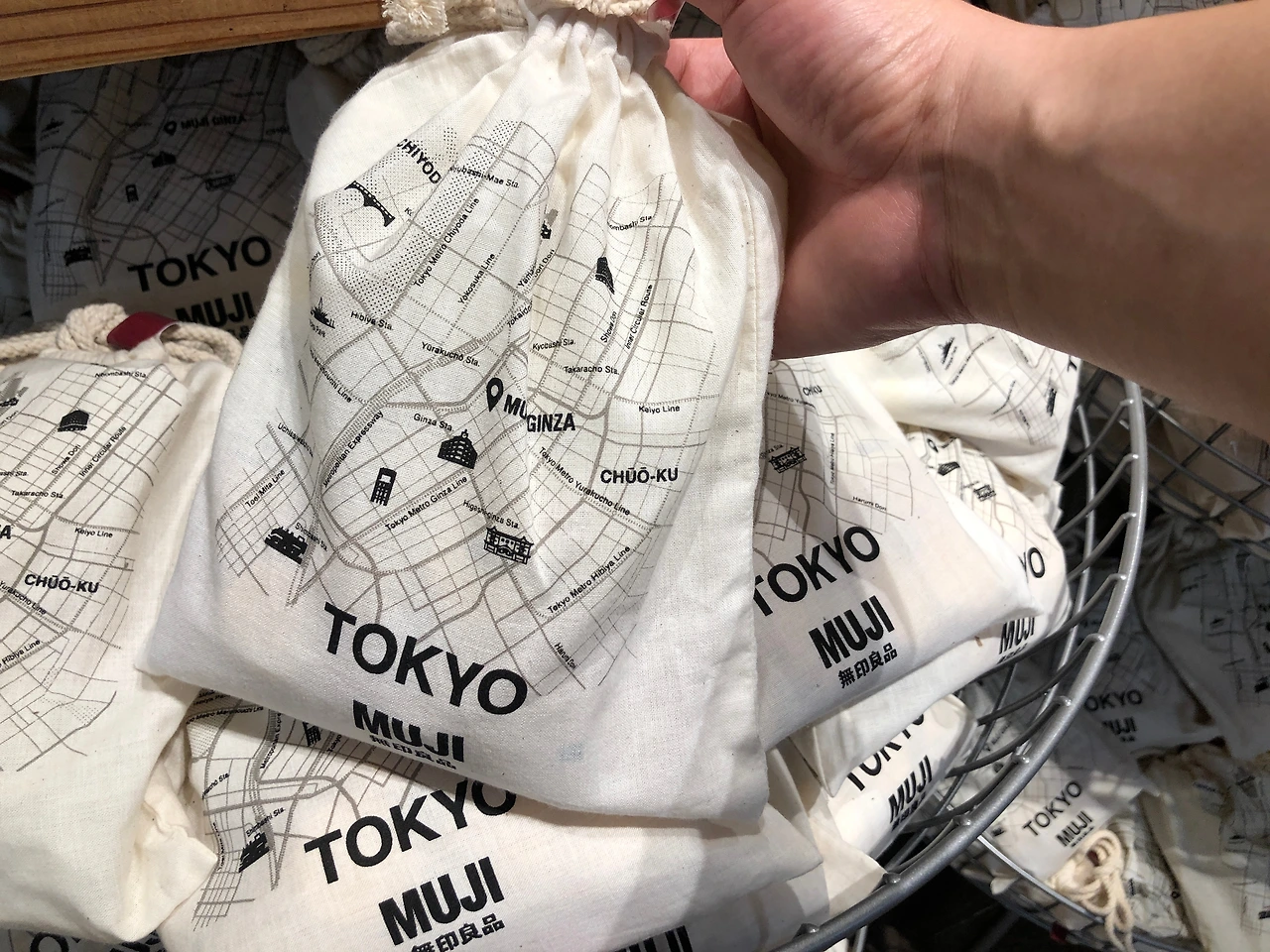무인양품에 들어가는 순간 정말 많은 사람들이 이 곳에 관심이 있다는 것이 느껴질 정도로 사람이 많았습니다. 사람이 많았지만 공간을 둘러보는데 불편함은 없었는데요. 중간중간 공간을 잘 활용한 것이 꽤 눈에 띄었습니다. 1층에 들어가자마자 크게 붙어있는 제작물은 이 건물의 구성을 한눈에 볼 수 있도록 되어있었습니다. 그리고 새로 오픈한 이 곳을 알리기 위한 방법 중 꽤 괜찮았던 것이 바로 오픈한 위치를 천 패키지에 담은 것이었는데요. 이질적이지도 않고 딱 무인양품다운 디자인이었습니다.