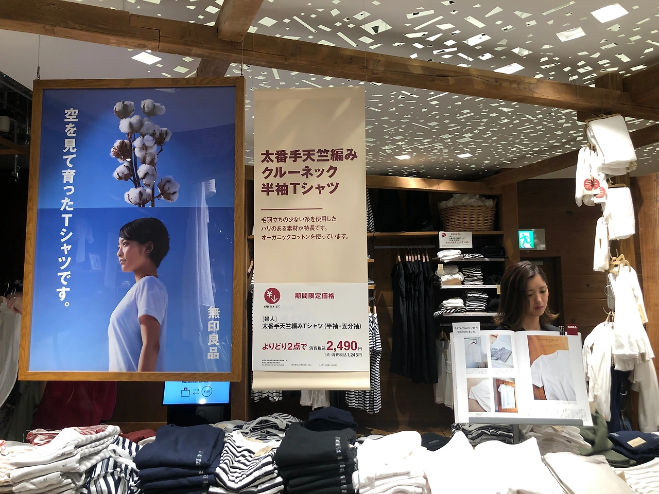 그리고 운동복을 파는 곳 매대에는 무인양품에서 판매하는 썬 제품을 배치했는데, 이것도 정말 디테일한 소비자 배려라는 생각이 들었습니다. 당연히 운동하는 사람들이 운동복을 구매하면서 꼭 필요한 제품인 썬 제품을 바로 옆에 둔다면 그만큼 구매할 가능성도 높지만, 소비자 역시 한 곳에서 자신이 필요한 제품을 다 살 수 있는 이점이 있겠다 싶었습니다.