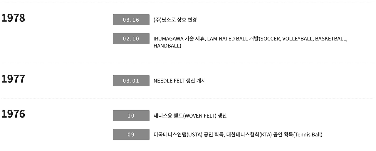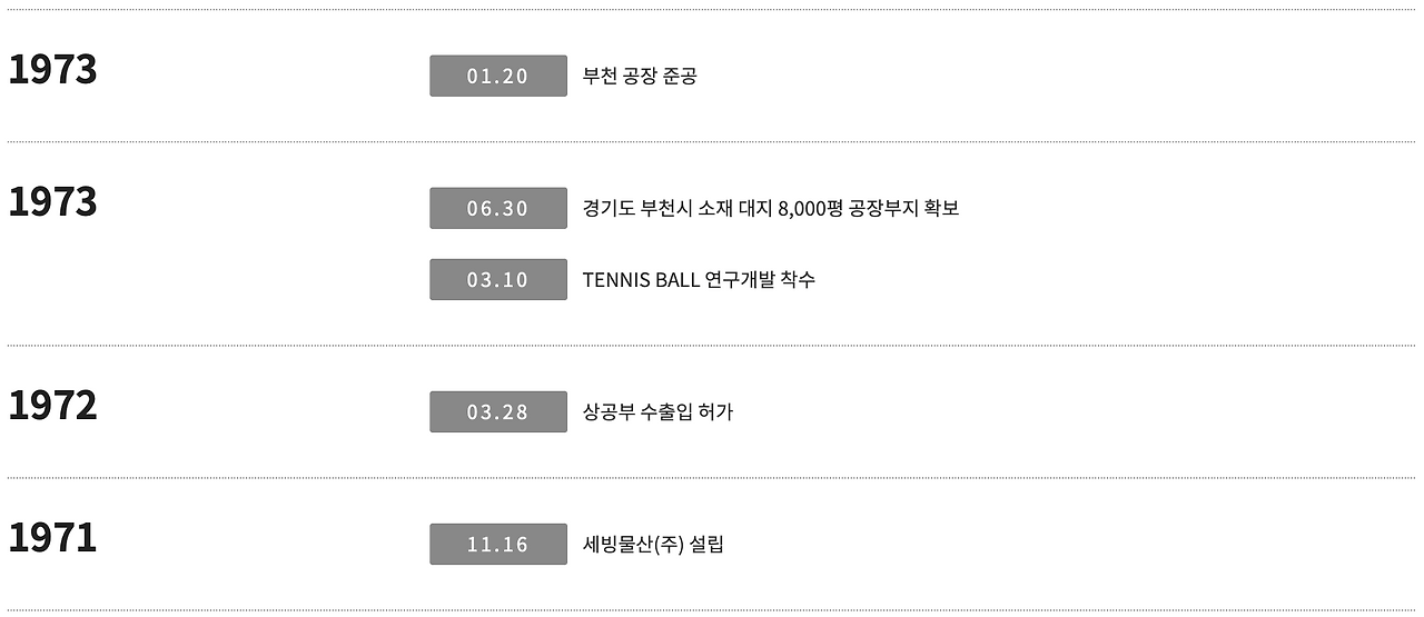스포층 용품 중 공을 주로 만들고 있으며, 세계 4대 그랜드슬램 국제 테니스대회 호주오픈 공식 사용구(1988~1990)로 지정되기도 했습니다. 지금도 다양한 공식 사용구로 지정되어 사용되고 있습니다.