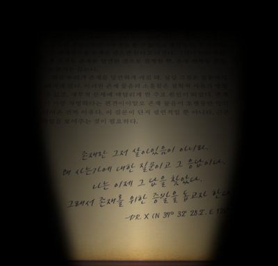 “아니, 그거 말고… 그 밑에, 누가 손글씨로 써놓은 거 있잖아. X 박사라는 사람이 쓴 거.”