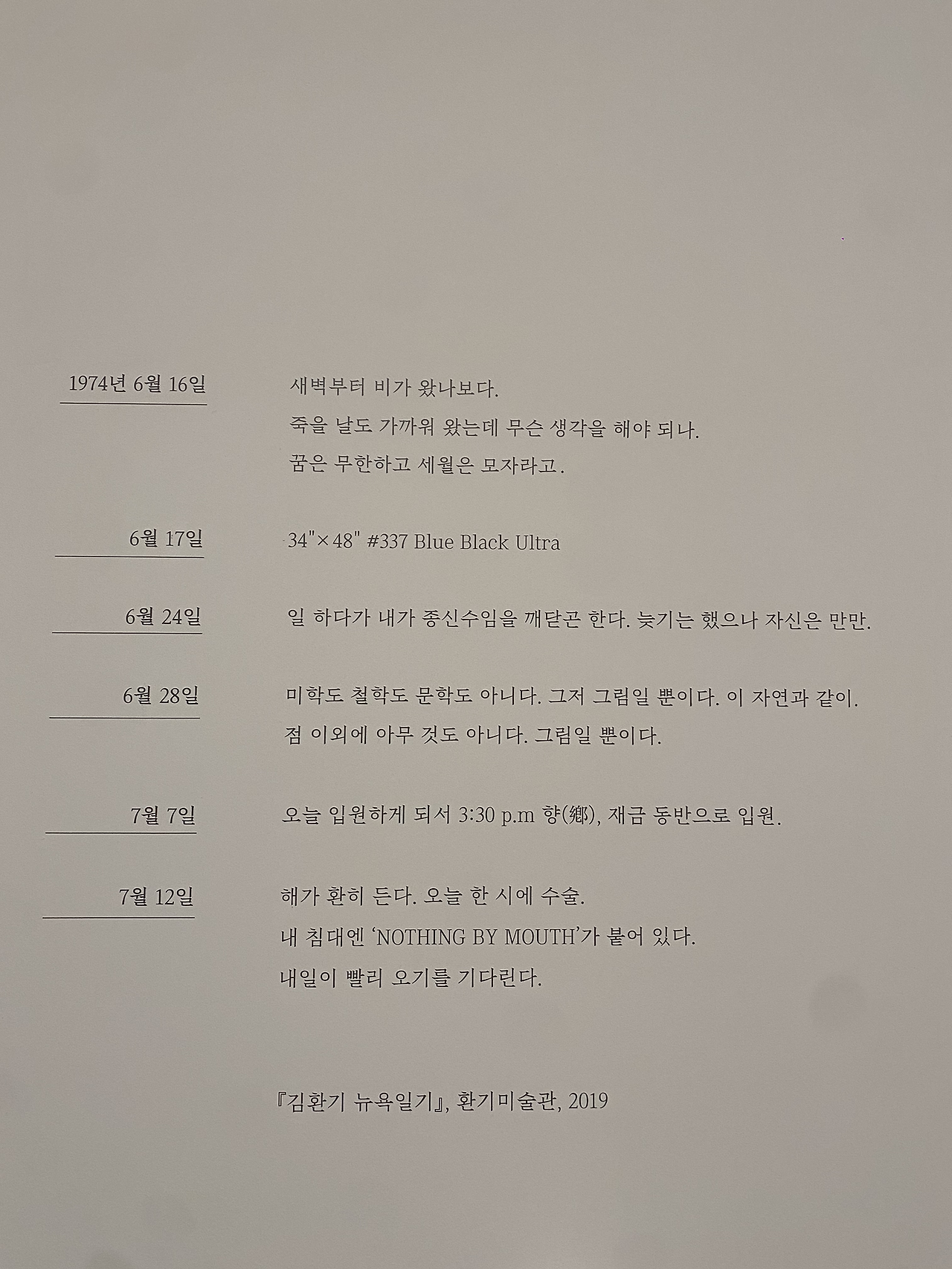 7월 12일의 일기를 본다, 화백은 7월 6일 작품의 마지막 점을 찍고 7월 25일 세상을 떠났다.
