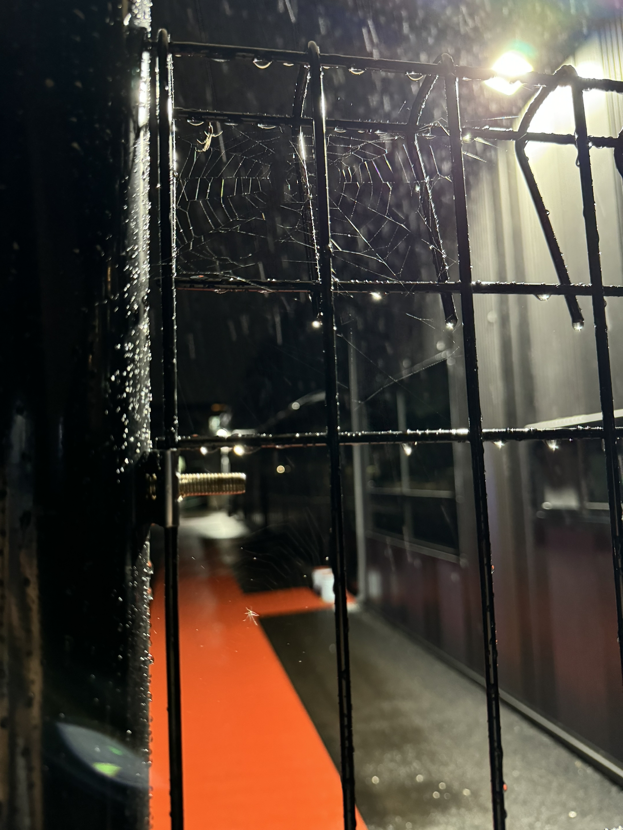 어젯밤 11시 비가 조금 약해진 틈을 타 산책을 나갔다. 한 손엔 우산을 들고, 한 손으론 아지의 리드줄을 가깝게 잡고, 비가 오니 잘 움직이지 않는 아지를 달래며 속에선 천불이 나지만 화도 못 내며 천천히 이동하다가.. 눈에 띈 거미줄. 꽤나 세찼던 비에도 잘 견디고 있는 대견하고 멋진 녀석들.