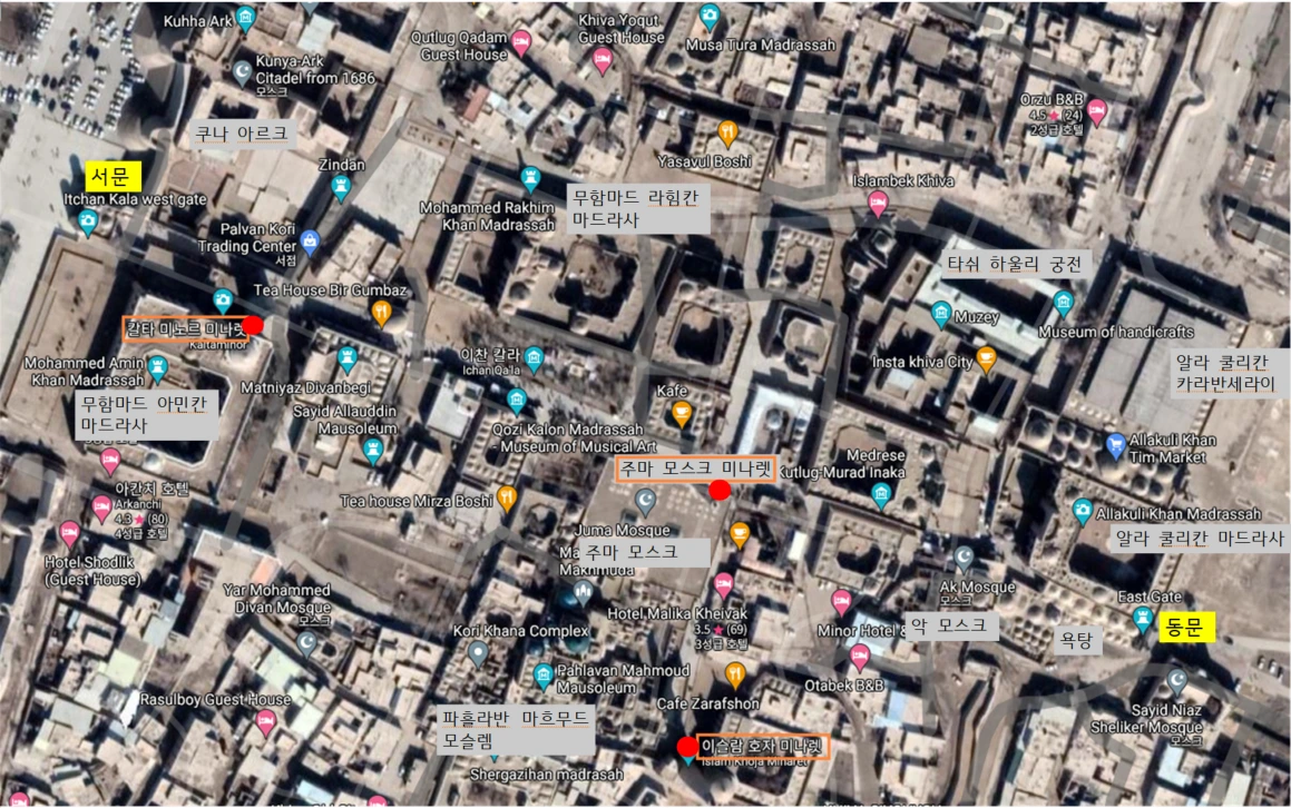 욕탕은 동문과 이어져 있는데, 동문은 마치 길 건너에 있는 알라 쿨리칸 마드라사의 부속 건물처럼 보입니다. 동문은 이찬 칼라의 동서남북 네 개의 문 중에 가장 오래된 문입니다. 3천 년 된 문이지요. 사실 동문은 어찌 보면 히바가 러시아의 보호국이 되면서 구 소련에 병합되는 현대사의 발단이 된 곳입니다.