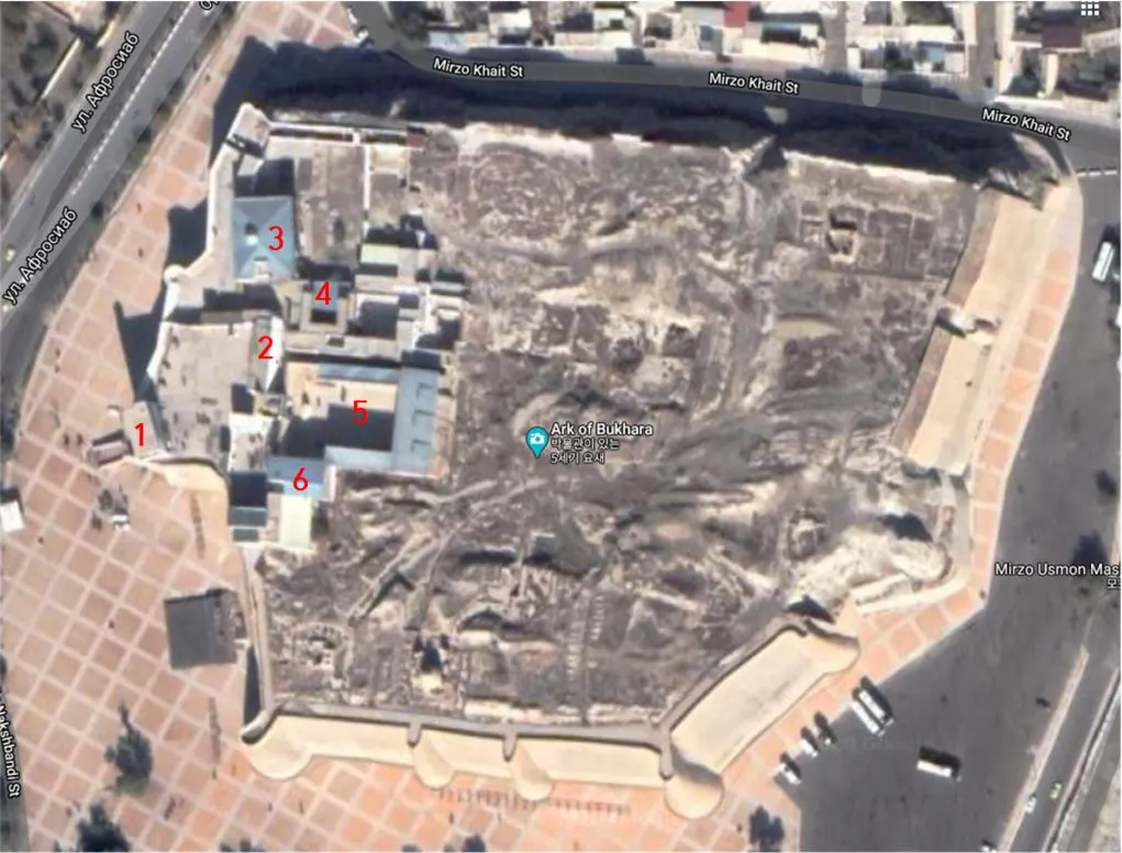 아르크성은 돌아보는 데 걸리는 시간은 너무 짧았습니다. 허무하게 느껴질 정도였어요. 지붕 없는 박물관이라고 불릴 정도로 보존이 잘 된 이찬 칼라의 기억이 너무 생생한 탓이겠지요. 아르크성은 부하라에서 가장 오래된 건축물입니다. 부하라의 통치자들이 천년 넘게 살았던 곳이지요. 현재의 모습을 갖춘 것은 16세기입니다. 둘레가 약 790미터, 넓이는 4만 제곱미터 정도 되는 크기로 칸의 집무실이나 하렘은 물론 조로아스터교의 불의 사원도 있었고, 고급 관리들의 집무 공간과 목욕탕, 모스크까지 수십 개의 건물이 있었다고 합니다. 아르크성은 7세기 이슬람의 침략, 13세기 몽골 침략 등 주변의 침략으로 여러 차례 개축되었지만, 지금과 같이 80% 정도 파괴된 것은 1920년 러시아와의 전쟁 때문입니다. 러시아의 포격만이 아니라 부하라의 에미르도 불을 질러 성채를 파괴하며 퇴각했던 탓이지요.