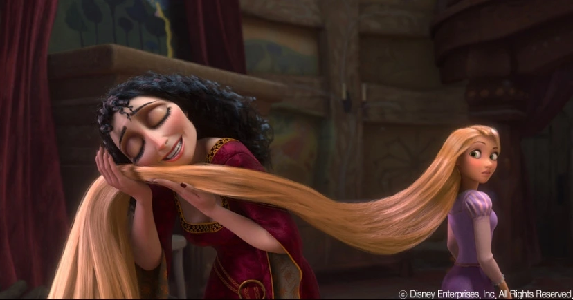 고델은 라푼젤의 머리가 꽃처럼 마법을 지니고 있다는 걸 알게 되어 라푼젤을 납치해 탑 안에서만 키우게 되죠.
