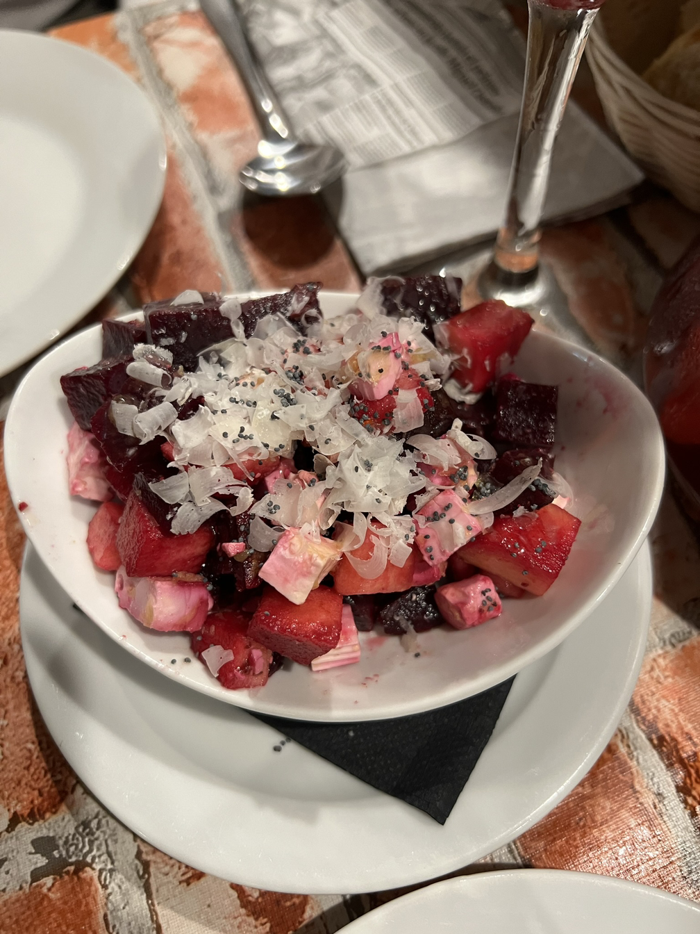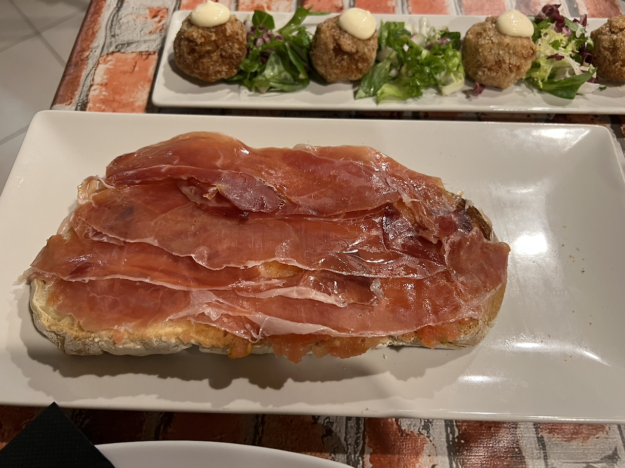 음식도 최고였다. 런던의 거의 반값이었는데 모든 메뉴가 맛있고 훌륭했다. 바삭한 바게트 같은 식감의 볼리요 빵 위에 토마토 잼을 바르고 얇게 저민 세라노 햄이 올라간 타파스는 비린 맛은 감칠맛이 났다. 같은 크기로 깍둑 썰린 페타치즈와 딸기, 비트루트가 섞인 샐러드는 새콤달콤하면서 입맛을 돋워주었다. 홈메이드 크로켓은 바삭하면서도 크리미했고 상그리아도 항아리 듬뿍 나왔는데 끝내주는 맛이었다. 배를 두둑하게 채우고 비가 그친 신선한 거리를 걸어서 호텔로 돌아가는 기분이란⋯⋯ 싱잉인더레인이 절로 흘러나왔다.