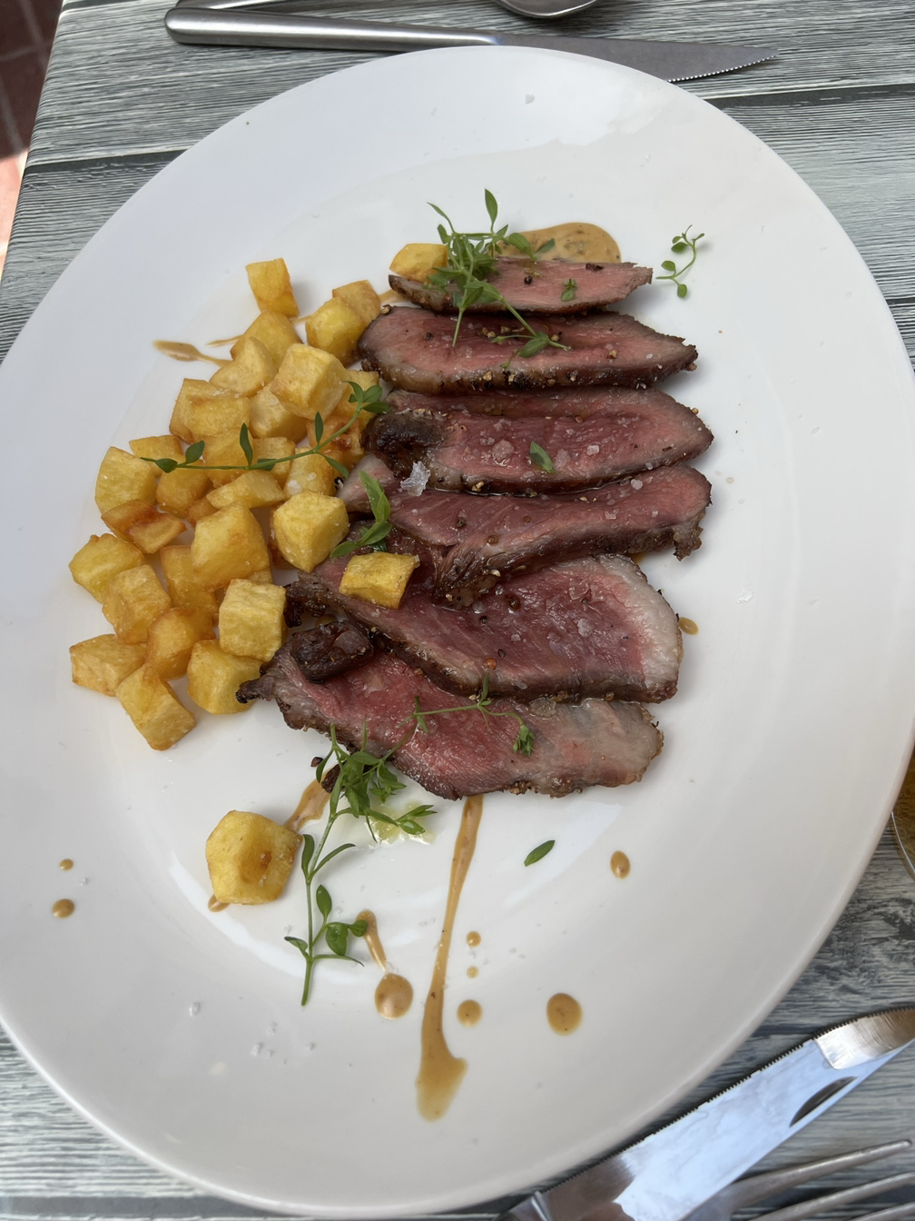 음식은 역시 끝내주게 맛있었다. 남편은 자기가 살면서 먹은 이베리코 돼지요리 중에 최고라고 했다. 나는 으깬 계란과 토마토 절임, 올리브가 같이 나온 러시안식 샐러드가 가장 맛있었다. 조기의 상태도 신선했고 소스와 잘 어울렸다.