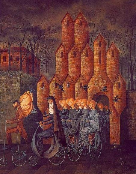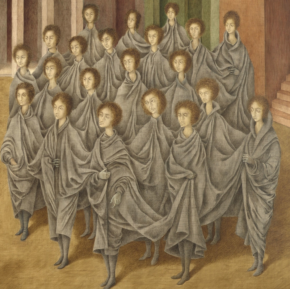 그녀의 삼부작 중 첫 번째 그림인 「탑을 향하여(Towards the Tower)」 에서는 똑같은 교복을 입은 소녀들이 여교장을 따라 기숙학교를 떠나는 모습이 묘사된다. 이 중 바로로 보이는 한 소녀는 혼자 다른 곳을 보며 반항적인 모습을 보인다.