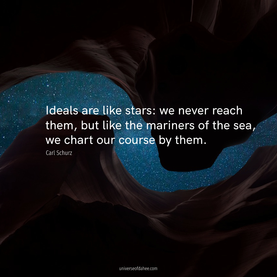 이상은 별과 같다: 절대 도달할 수 없다, 그러나 우리는 바다의 선원들처럼 이에 의해 우리의 경로를 정한다. _칼 슐즈
