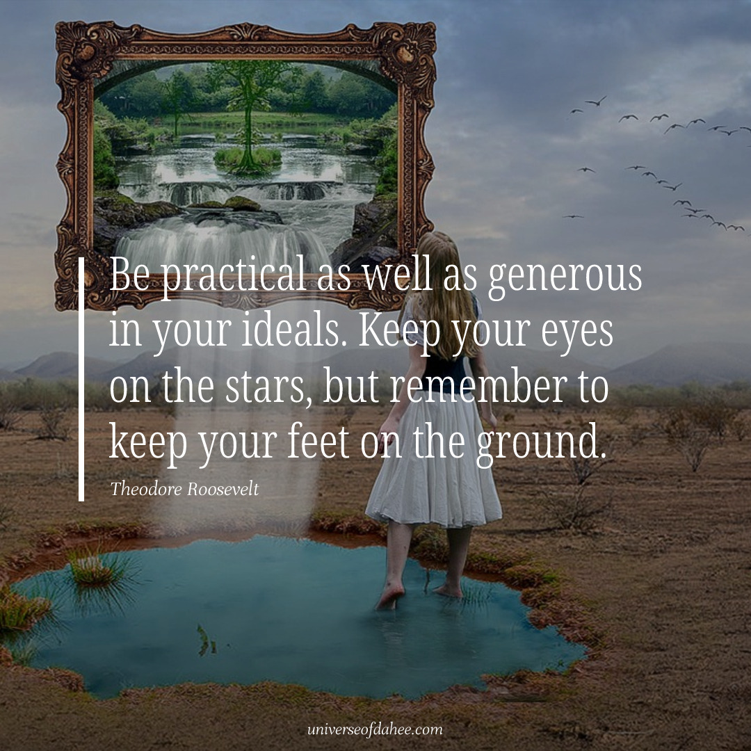 현실적인 태도를 추구하며 이상에 관대해져라. 별을 바라보더라도 발은 땅에 딛고 있어야 한다. _시어도어 루스벨트