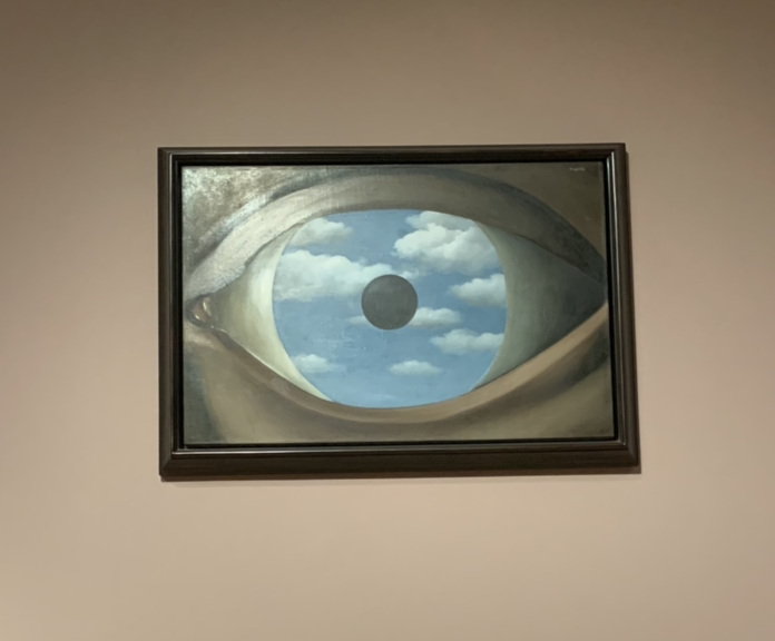 르네 마그리트의 잘못된 거울. 이것도 미술 교과서에서 봐서 그런지 바로 시선이 갔다. 게다가 입구 정면에 있어서 더 눈에 띄는 작품이다. 테크닉이나 시각적인 미보다는 작품 뒤에 있는 철학 덕분에 많은 사람을 사로잡은 작품이지 않나 싶다. 초현실주의 사진작가 Man Ray는 "보여지는 것만큼 보고 있는 작품"이라고 꼭 작품이 살아있는 듯한 뉘앙스의 평을 했다. 내면의 주관적인 자아와 외부 세계의 경계에 대해 이렇게 간단명료하면서 정확하게 표현해낼 수 있다는 게 가히 천재적이다.