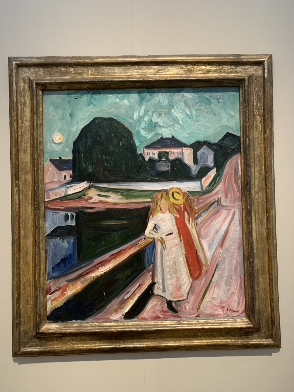 에드바르드 뭉크의 다리 위 소녀들 석판화 버전. 모네나 르누아르처럼 뭉크는 거의 삼십 년간 이 풍경에 집착하며 조금씩 다른 버전을 스무 개나 만들어냈다. 이 풍경은 그에게 도대체 어떤 의미였을까?