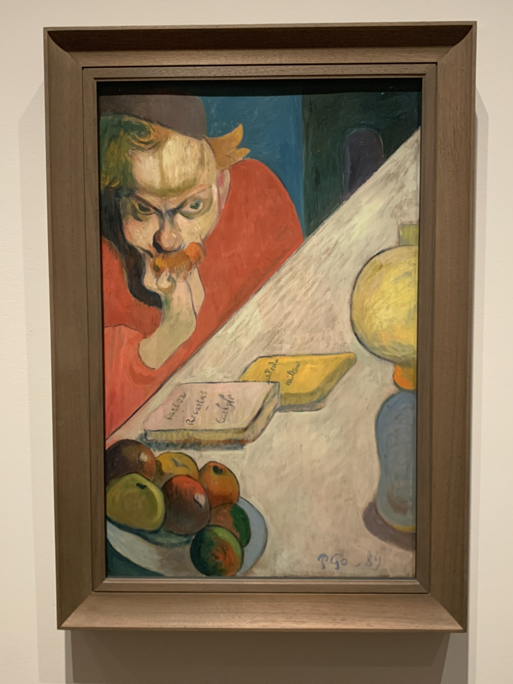 폴 고갱의 메이어 드 한의 초상화. 메이어 드 한은 네덜란드 화가로 고갱의 친구였다. 대담한 색채와 동적인 구도덕에 그냥 지나치기 힘든 그림이었다. 사과는 고갱이 존경했던 폴 세잔에 대한 오마주라고 해석되기도 한다.