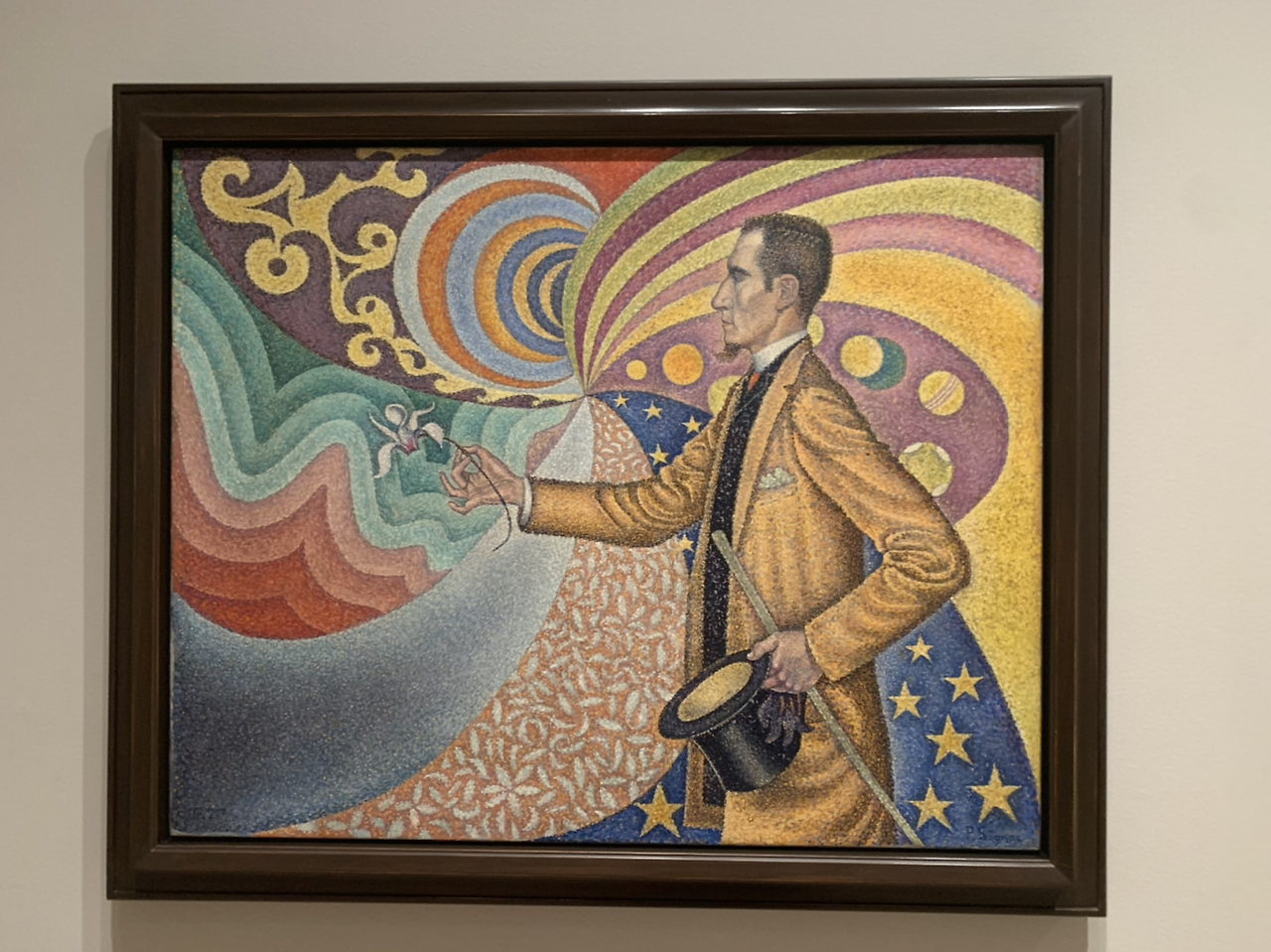 폴 시냑의 펠릭스 페네옹의 초상(원제목은 Opus 217. Against the Enamel of a Background Rhythmic with Beats and Angles, Tones, and Tints, Portrait of M. Félix Fénéon in 1890)의 알록달록한 색감은 예외 없이 관람객들의 눈길을 사로잡는다.