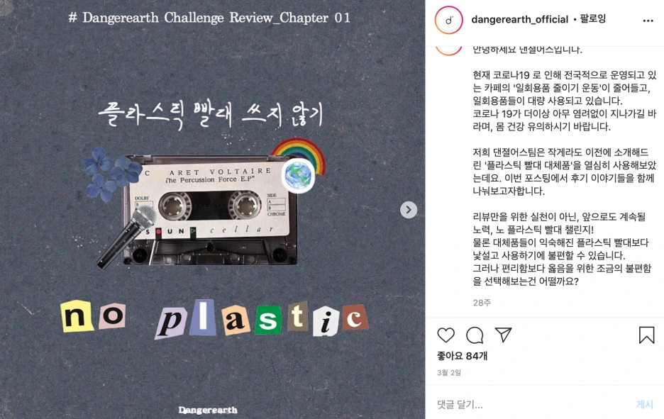 지난주에 댄졀어스 팀을 인터뷰이로 선정하고 나서, 며칠간 일회용 컵 대신 텀블러 사용하기를 실천했어요. 신경이 쓰이긴 했지만, 생각보다 어렵지는 않더라고요!