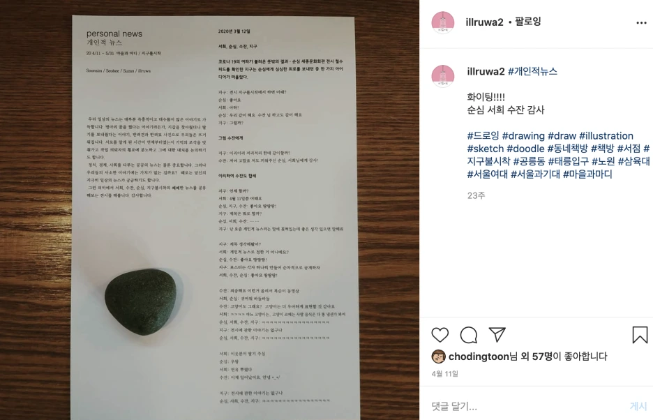 책방을 하다 보니, 책보다는 사람이 먼저더라고요. 책방에 사람들이 많이 오니 사실 물리적인 장소보다 더 큰 공간이 되었어요. 그러면서 만난 사람들에게 '최근에 어떻게 지내니'라는 안부를 묻는 것으로 시작하게 되었어요. 다들 “ 그냥 그렇게 지내요" 이긴 해. 사람 사는 게 어떤지 궁금해요.